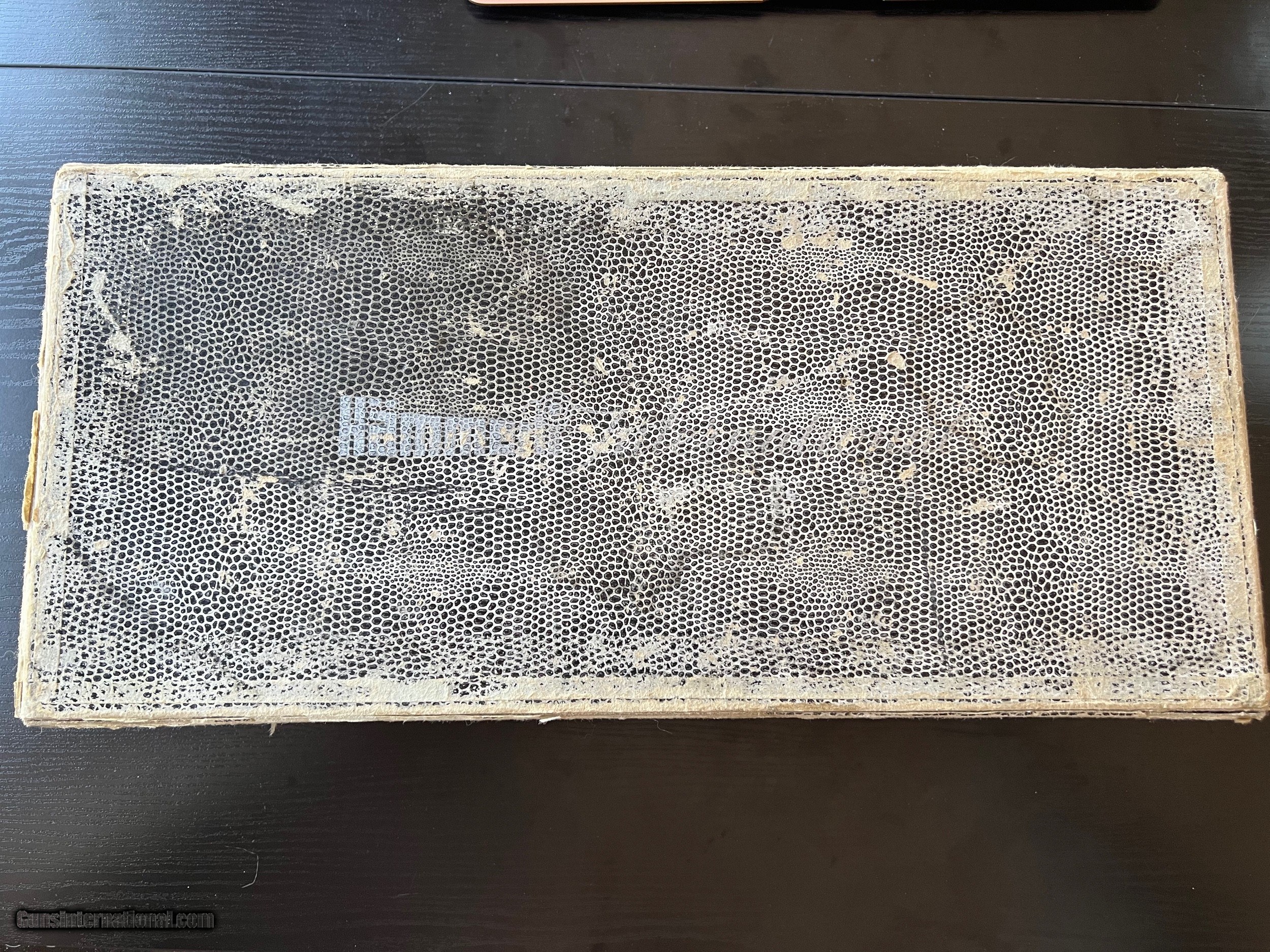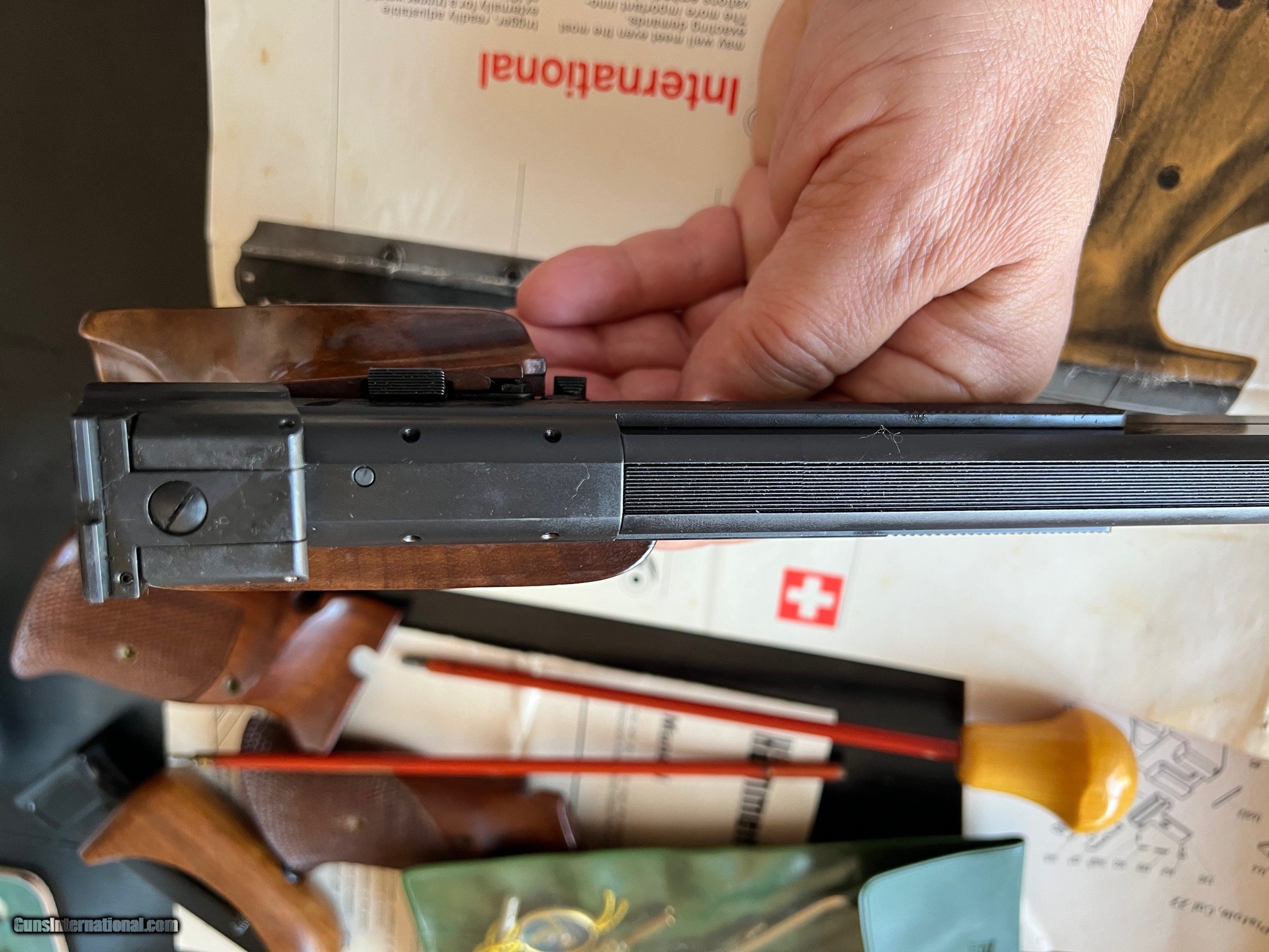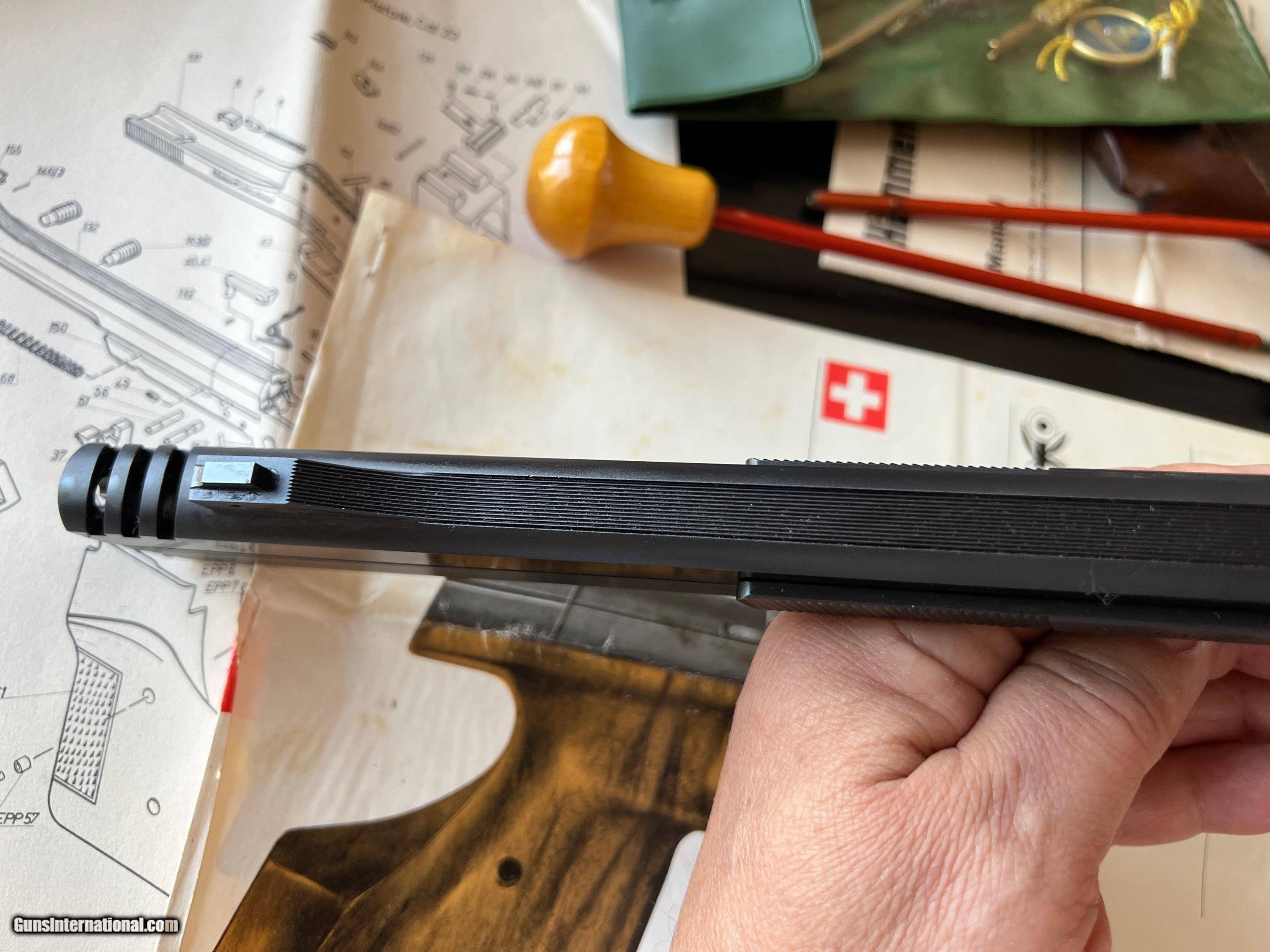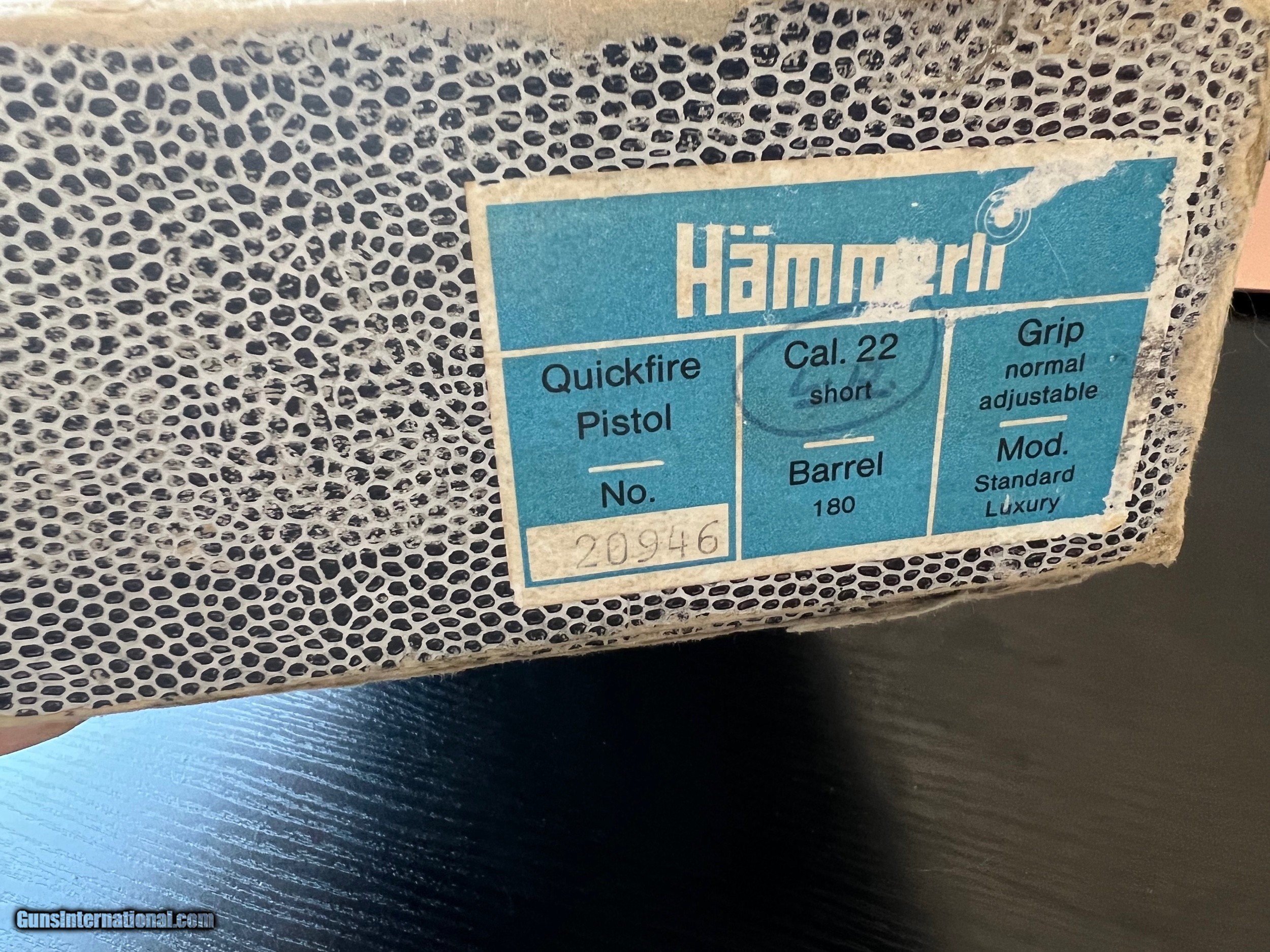 Description: SOLD This is an absolutely mint "as new in the box", desirable Hammerli 207 "American Model" target pistol, chambered in .22 LR, made in Switzerland in the early 60's. The gun appears new and unfired and comes with an original serialised box, two matching mags(serialised to the gun) and a multitude of paperwork, extras, tools, spare grips - all pictured. Hammerli target pistols were a continuation of German Walther Olympia guns that were continuously improved in the post war years. They were considered to be top notch target guns worthy of Olympic shooters. The 207 "American Model" was made in very limited numbers, of highest Swiss quality, and became a collectible in its own right. This particular gun is in stunning original condition and cannot be upgraded. The box shows some wear but is all intact. A great target gun and a great investment gun as well. 3-days inspection FFL or C&R (where allowed) $40 shipping in CONUS SOLD Curio/Relic: Yes |