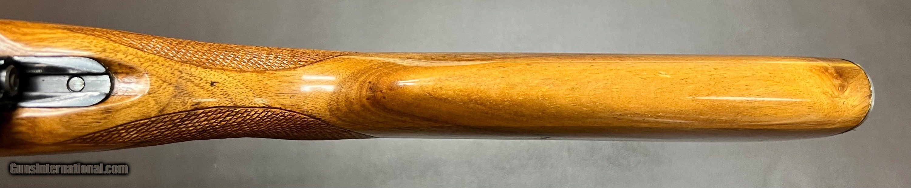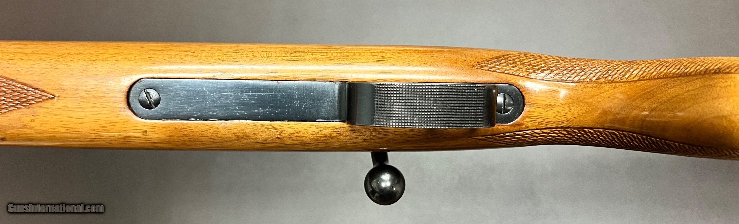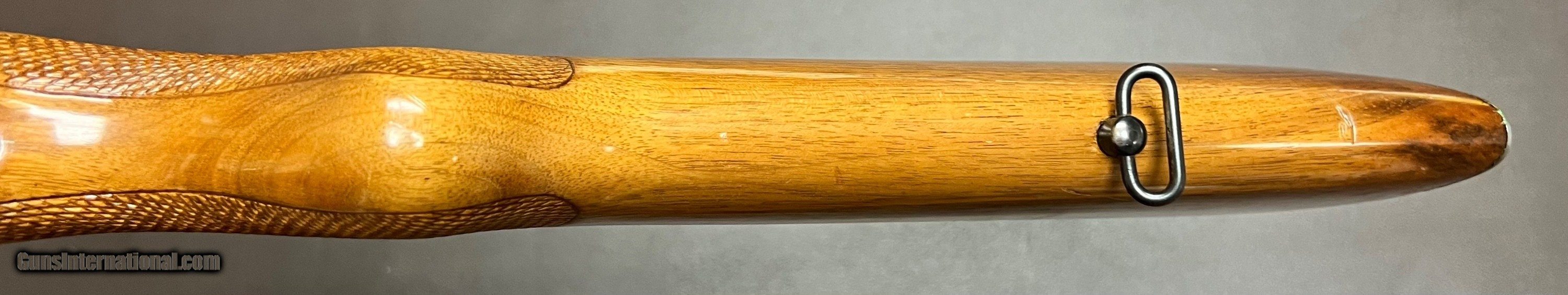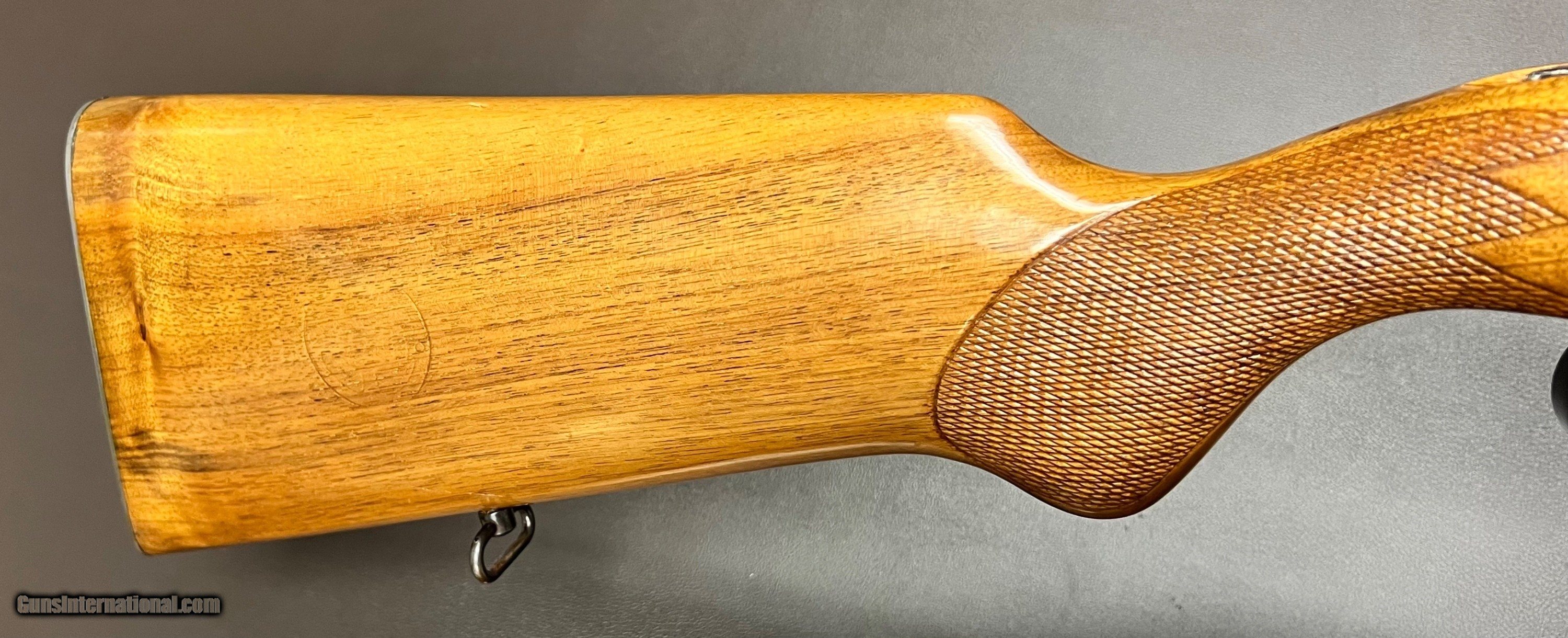 Description: Mauser ES 340 B .22LR single shot target rifle 26.5" heavy barrel with adjustable tangent rear sight (30-200 metres) and ramp front with interchangeable blade Bore is in pristine condition Miniature Mauser action with grooved top for scope mount Two stage trigger with crisp pull Three position safety Sling swivels figured one peice target rifle stock with checkered grip and forend LOP 14 1/8" over Mauser banner buttplate 8lbs 2oz Built in the 1930s Condition: Bluing is in very nice original condition, wood is in excellent refinished condition with added checkering on grip and forend with few minor handling marks. Top quality accurate pre WW2 Mauser .22LR target rifle that shoots as good as anything built today, the grooved receiver makes it so a scope can easily be added to this rifle if preferred. Curio/Relic: Yes Rifle Caliber: .22 Long Rifle Price: $950.00 Buy Now Contact Seller |