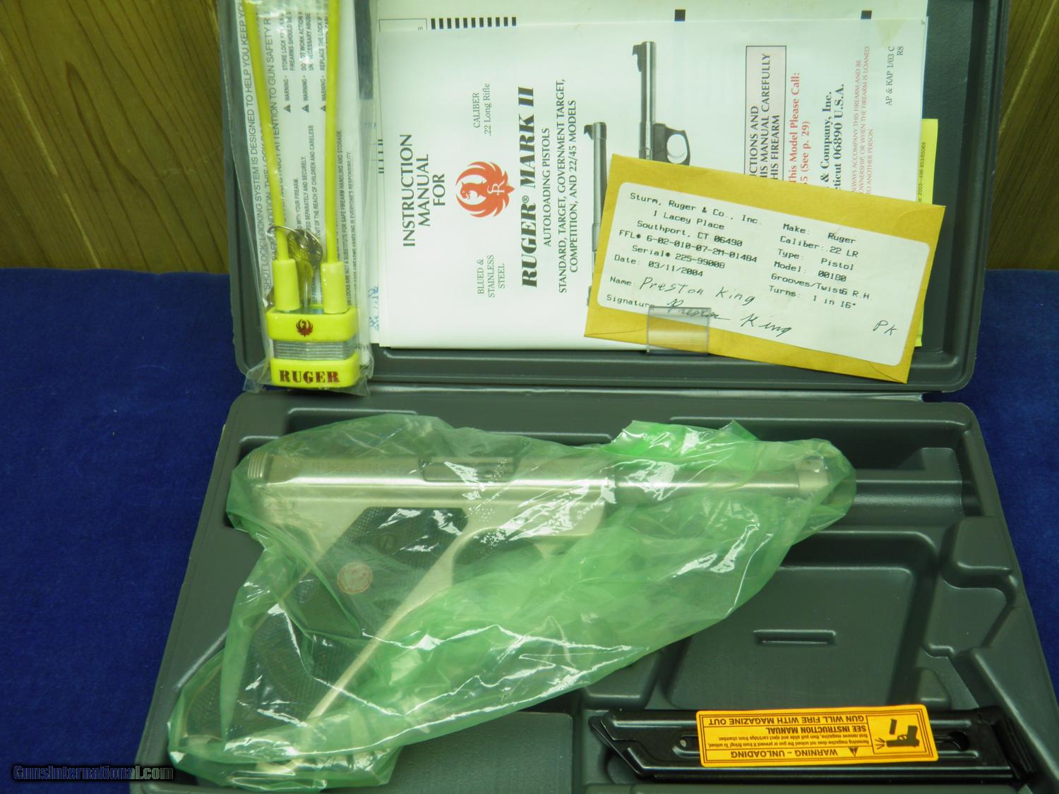 RUGER MARK II STANDARD 4 3/4" STAINLESS STEEL 100% NEW AND UNFIRED IN FACTORY CASE!