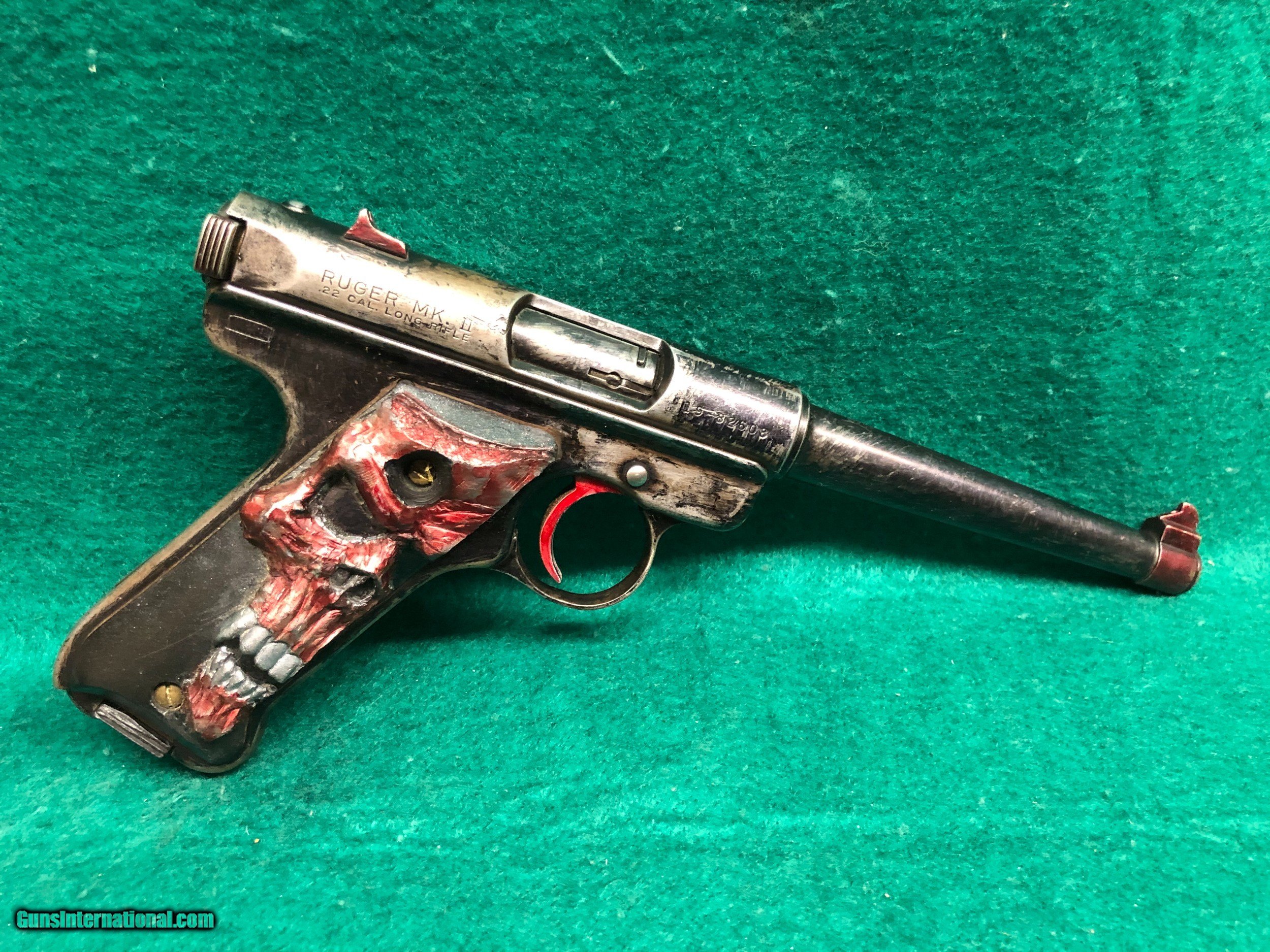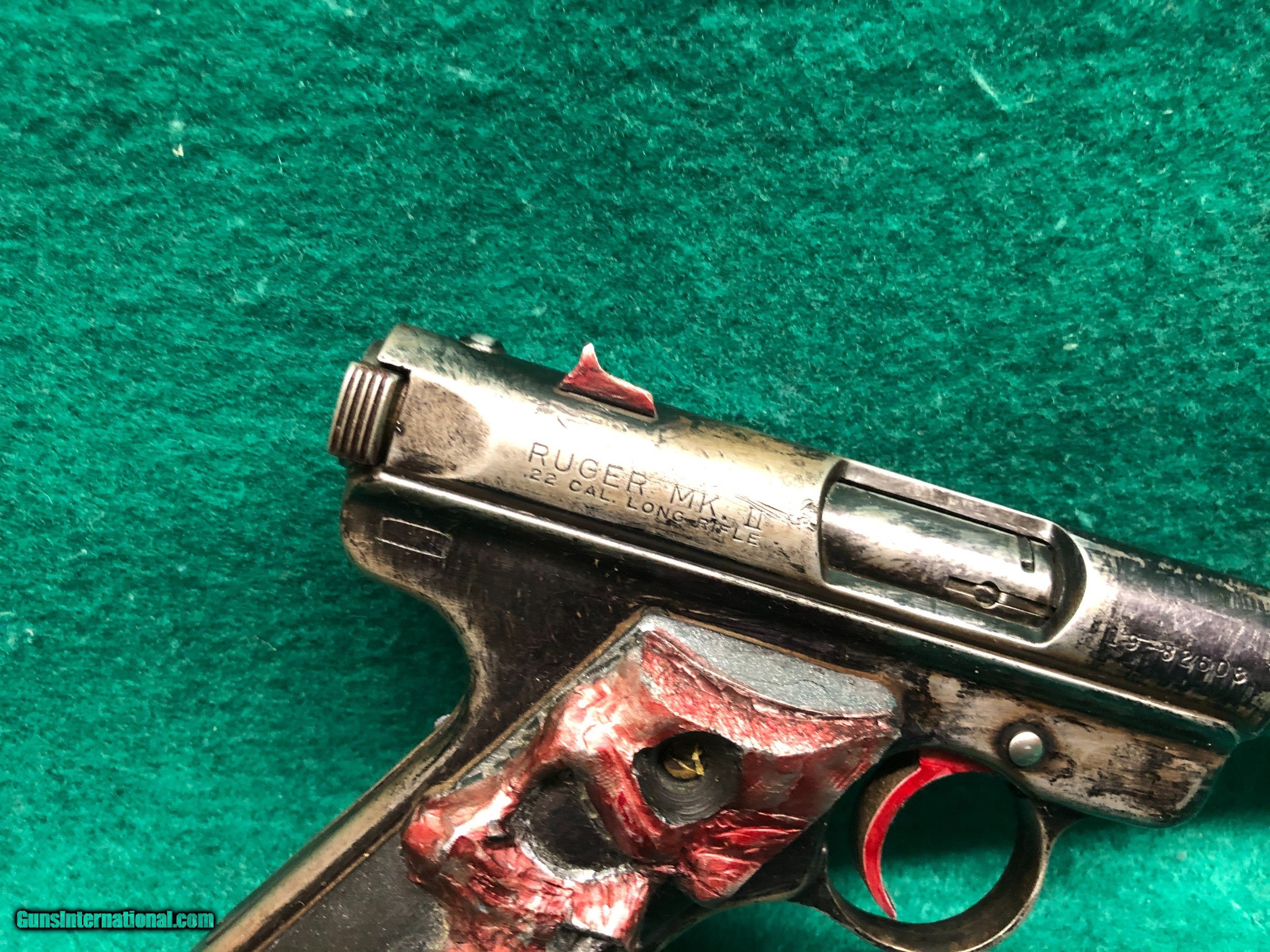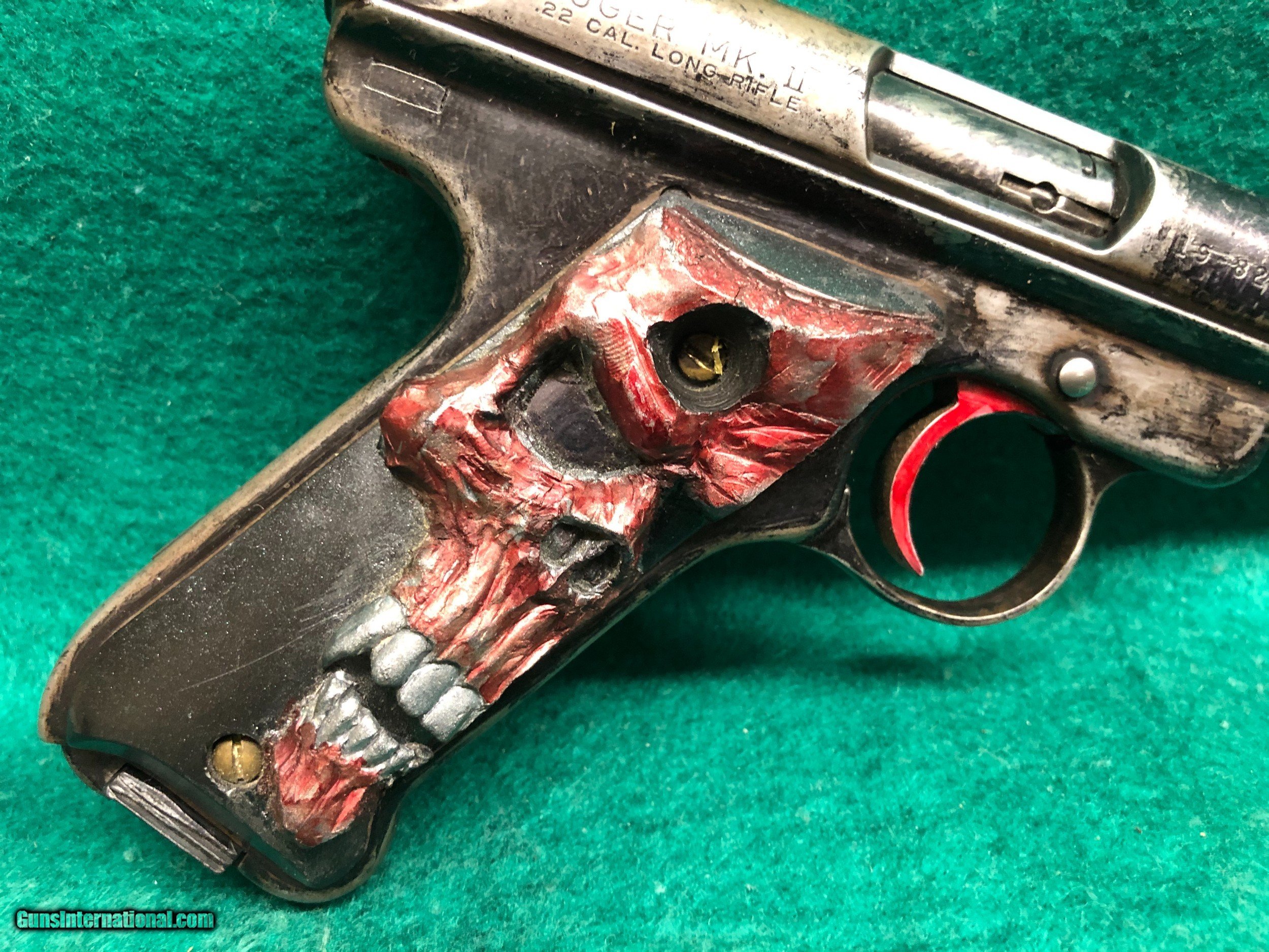 Description: RUGER MKII 22LR CALIBER SEMI AUTO PISTOL. THIS PISTOL HAS CUSTOM MADE SKULL STYLE GRIPS AND COMES WITH 1 MAGAZINE. THIS PISTOL SHOWS WEAR EXTERNALLY BUT MECAHNICALLY SEEM TO BE GOOD. THIS CAN NOT BE SOLD IN CA. SHIPPING IS $25.00 SOLD Handgun Caliber: .22 Long Rifle Manufacturer: RUGER Model: MKII Serial Number: 1982608 Condition: FAIR |