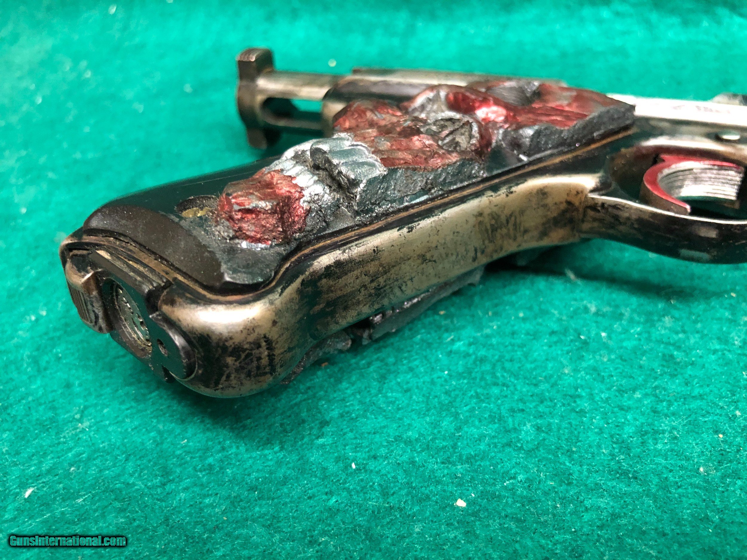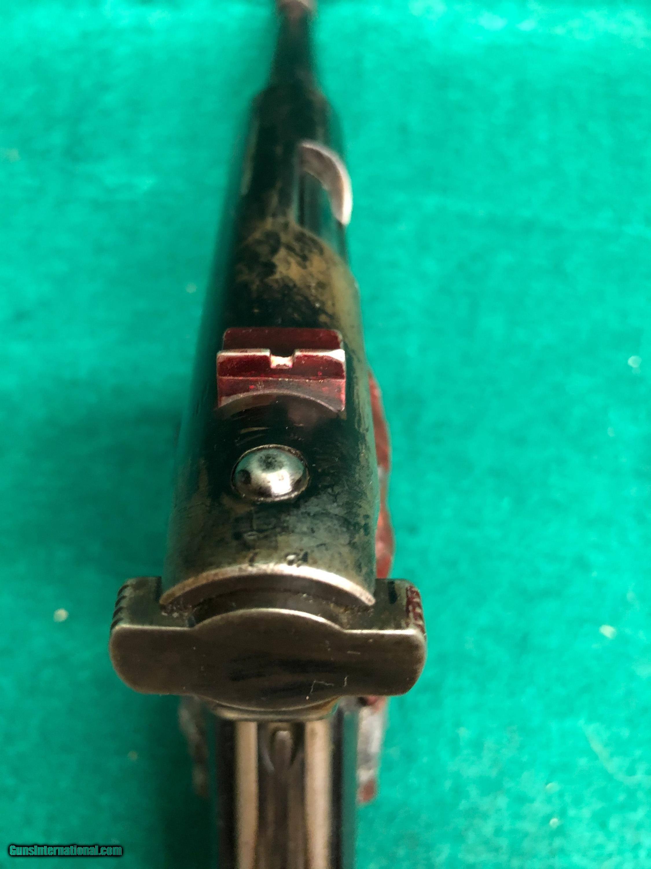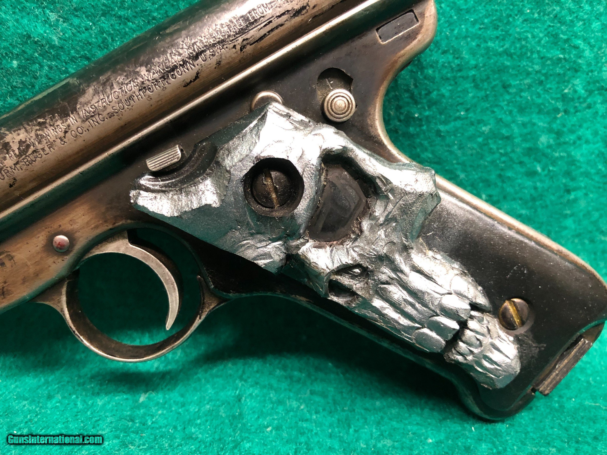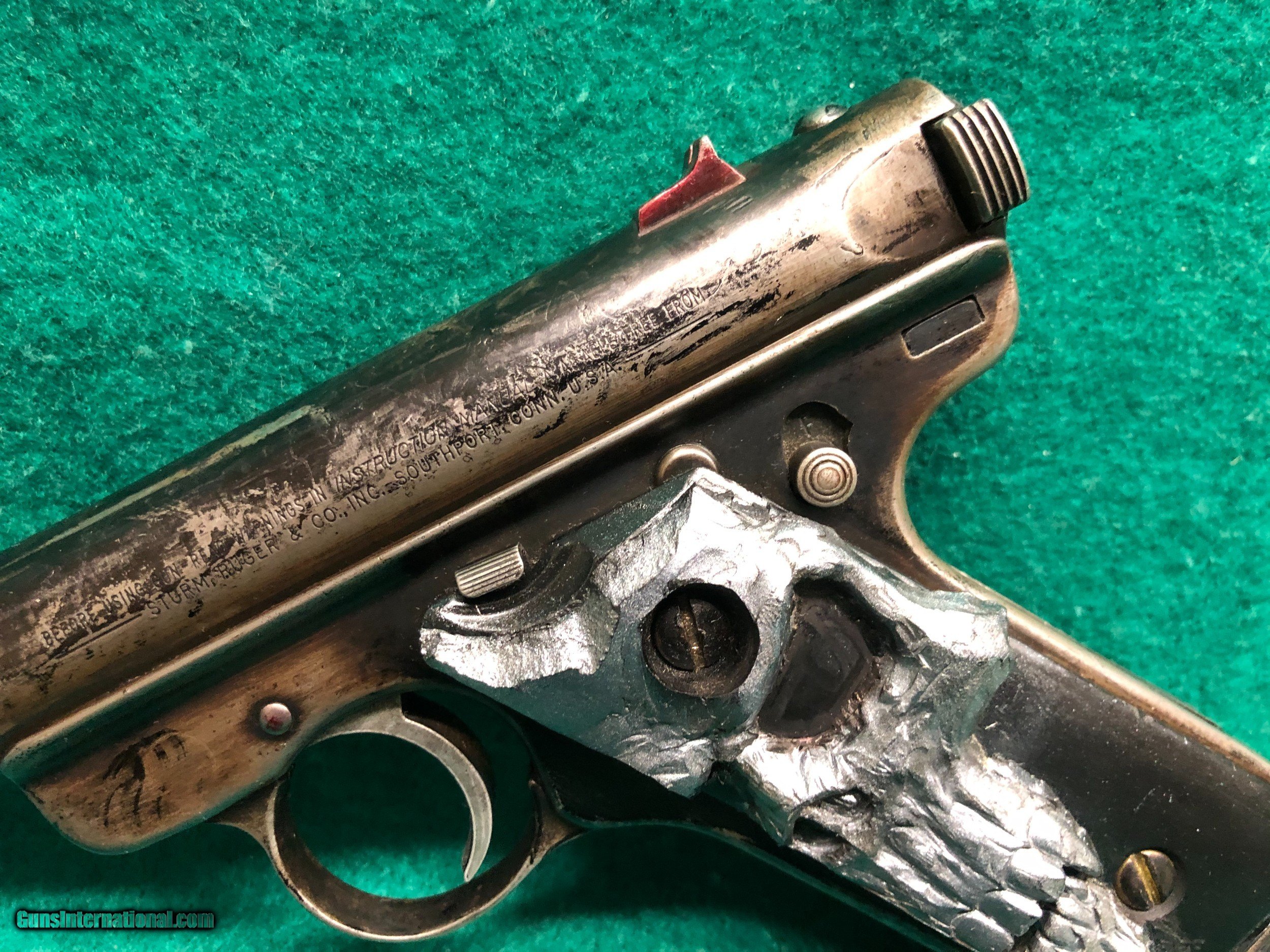 Description: RUGER MKII 22LR CALIBER SEMI AUTO PISTOL. THIS PISTOL HAS CUSTOM MADE SKULL STYLE GRIPS AND COMES WITH 1 MAGAZINE. THIS PISTOL SHOWS WEAR EXTERNALLY BUT MECAHNICALLY SEEM TO BE GOOD. THIS CAN NOT BE SOLD IN CA. SHIPPING IS $25.00 SOLD Handgun Caliber: .22 Long Rifle Manufacturer: RUGER Model: MKII Serial Number: 1982608 Condition: FAIR |