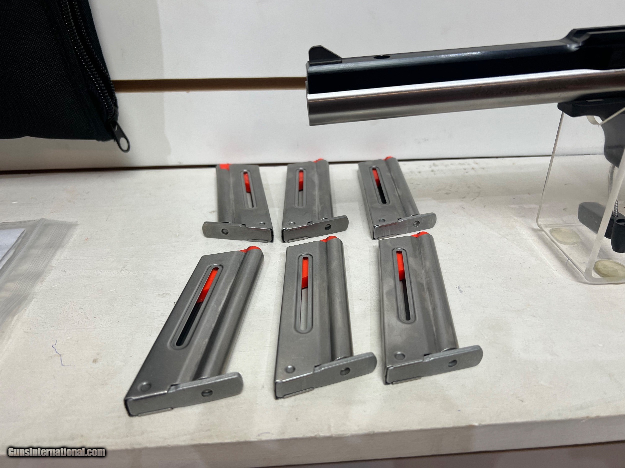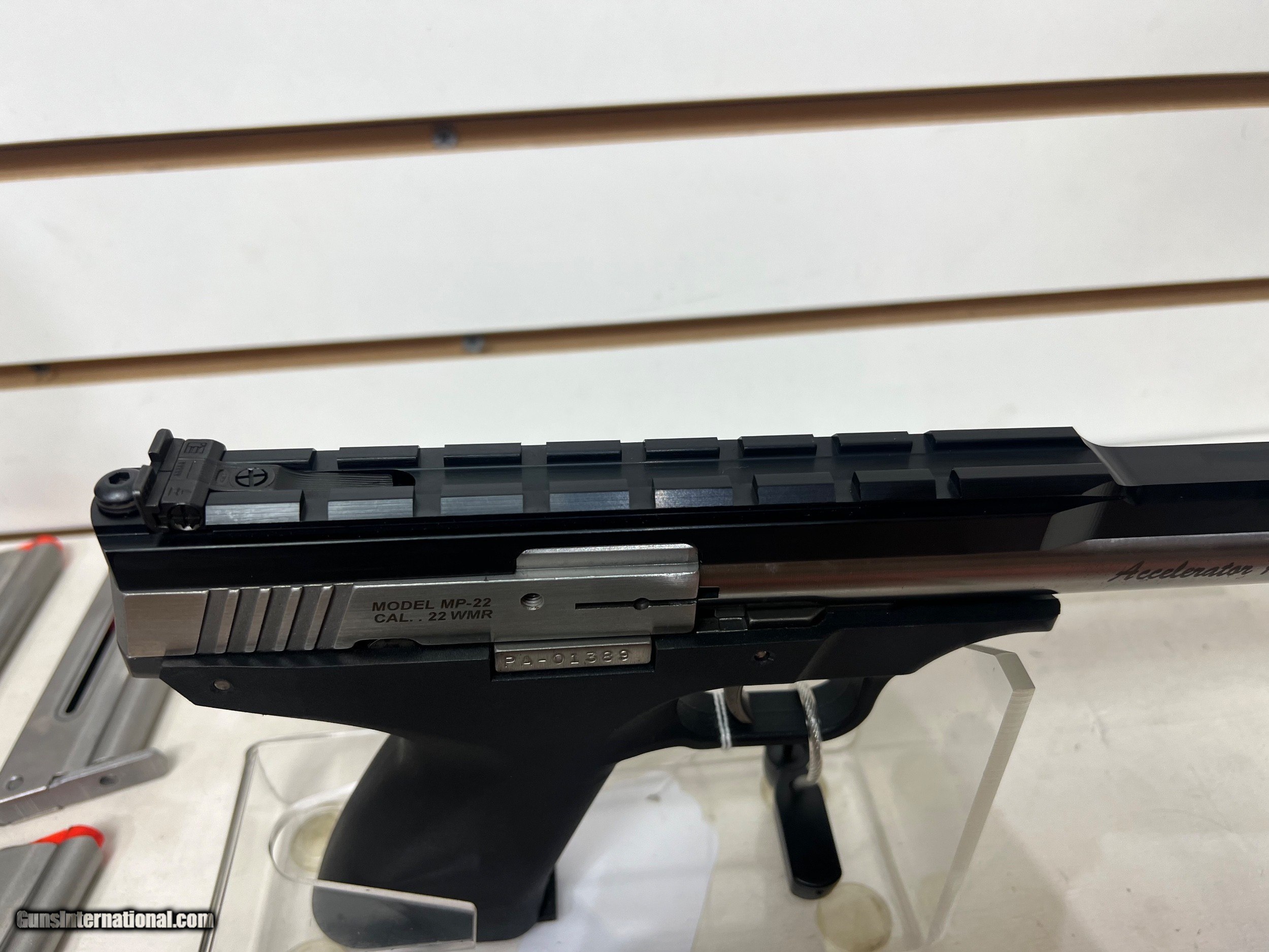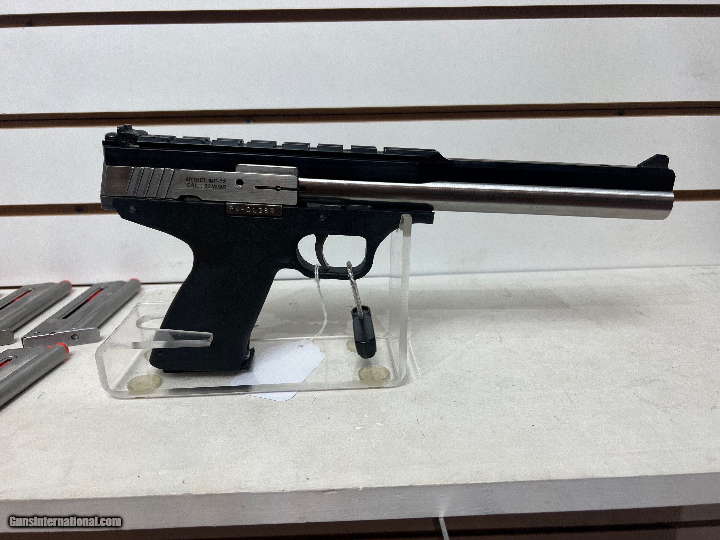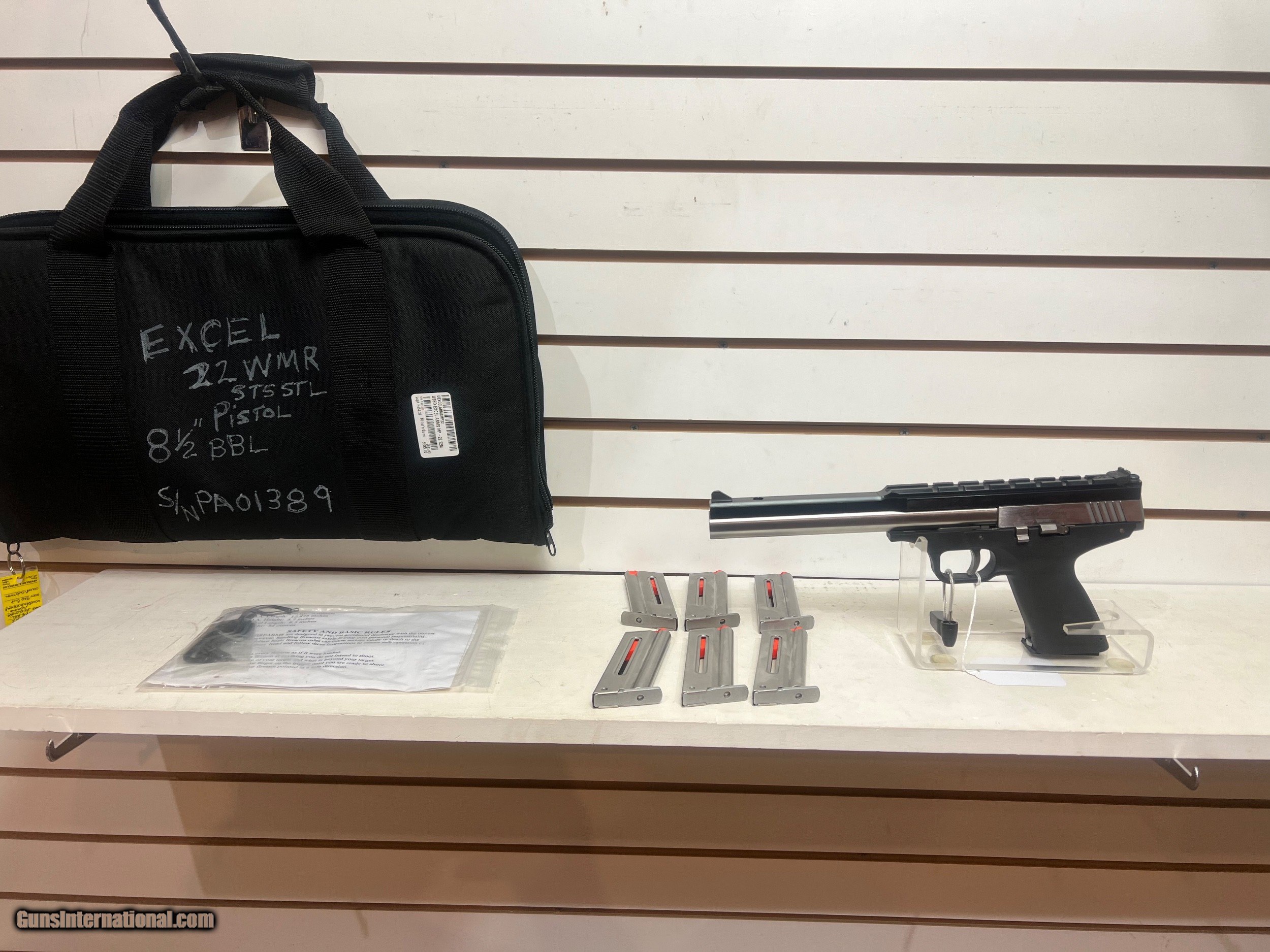 Description: Used Excel Arms Mp-22 22 magnum 8 1/2" bull bbl stainless steel open sights 7 - 9round mags soft case unfired Buyer pays shipping Millers Gun Center Located in New Castle, Delaware "Home of TAX-Free shopping" No Credit Card Fees Send Gun international inquiry and then call 302-328-9747 to complete your purchase SOLD Serial Number: PA01389 |