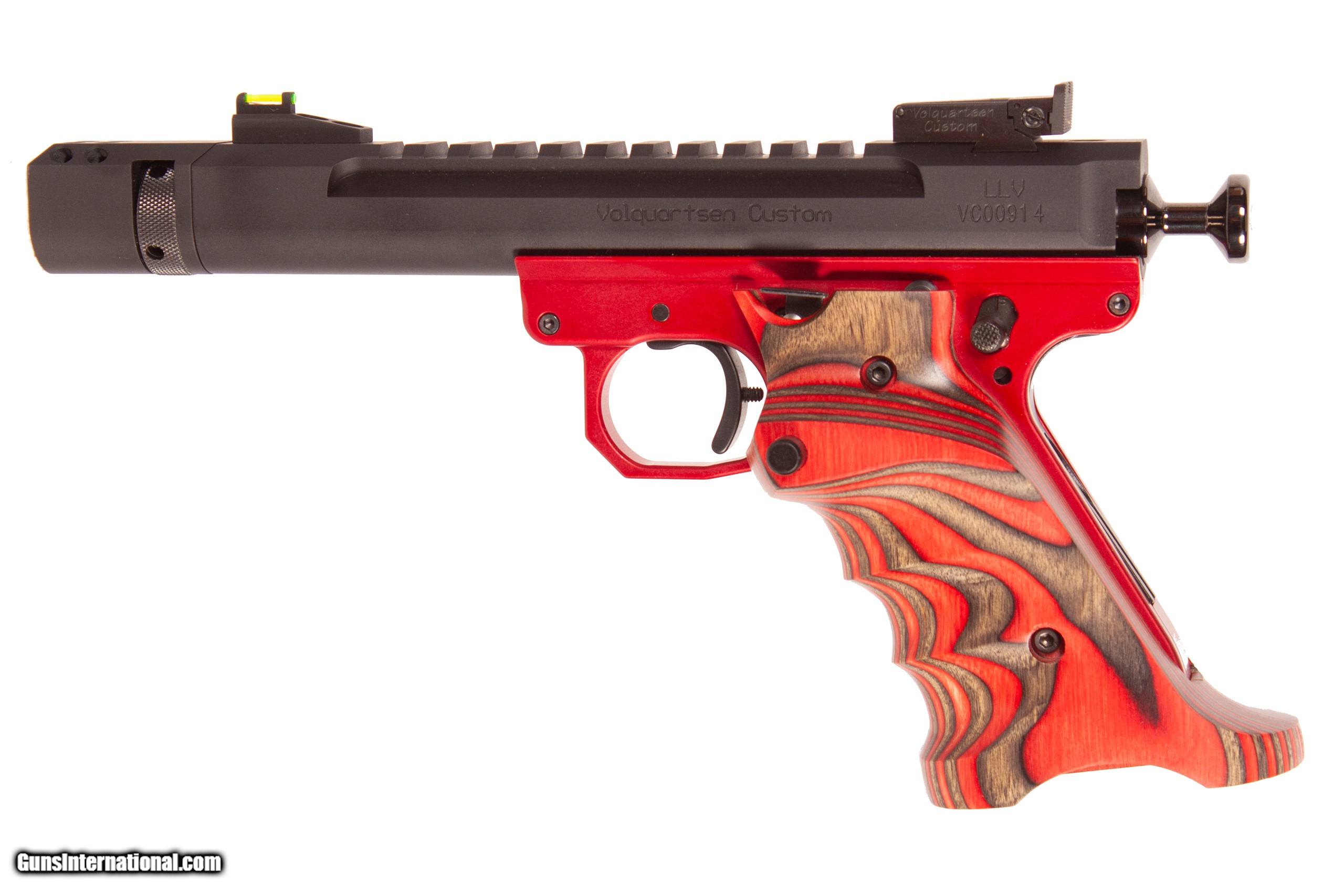Volquartsen Custom LLV chambered in 22 Long Rifle with a 4½ inch threaded barrel, pristine mirror-shine bore with pristine rifling in excellent new working order as this pistol is