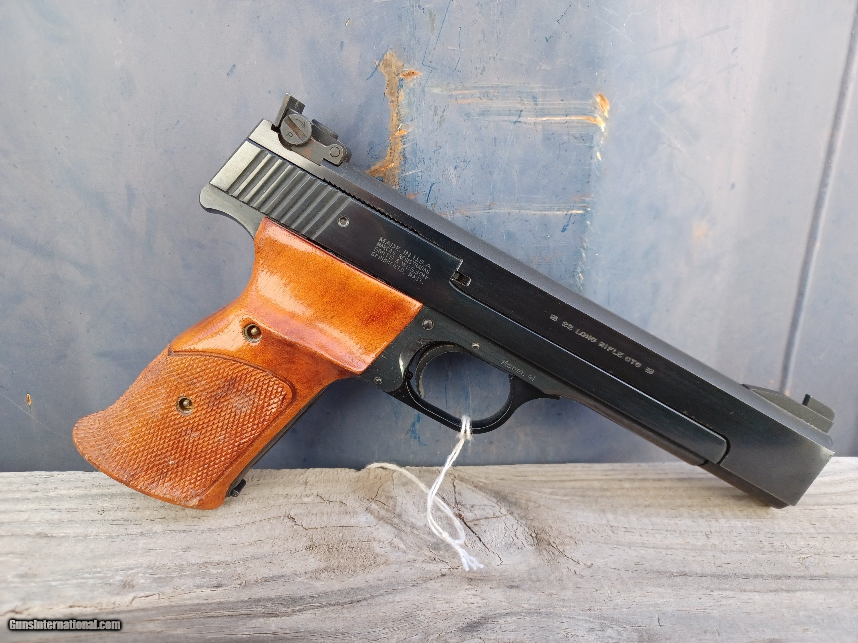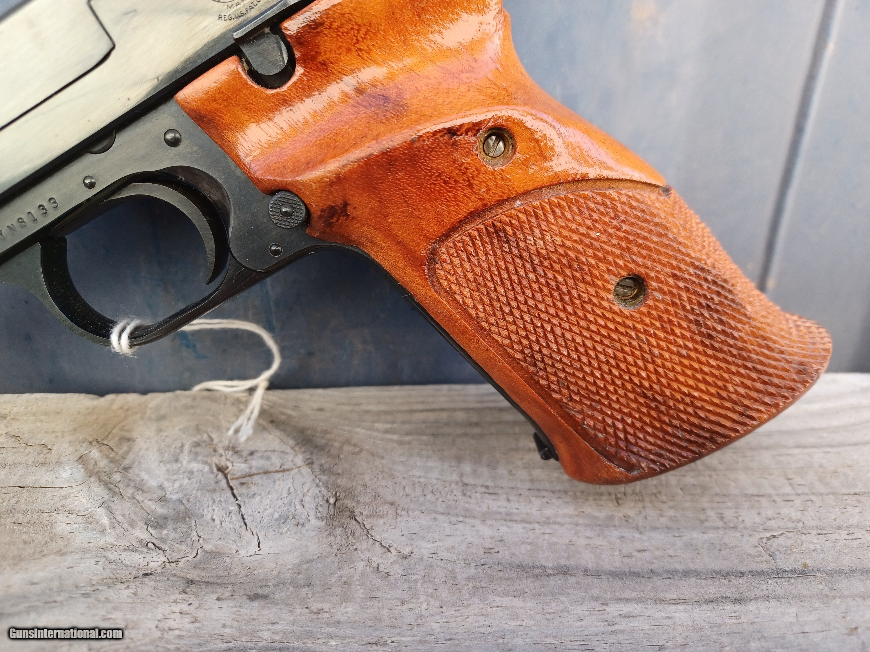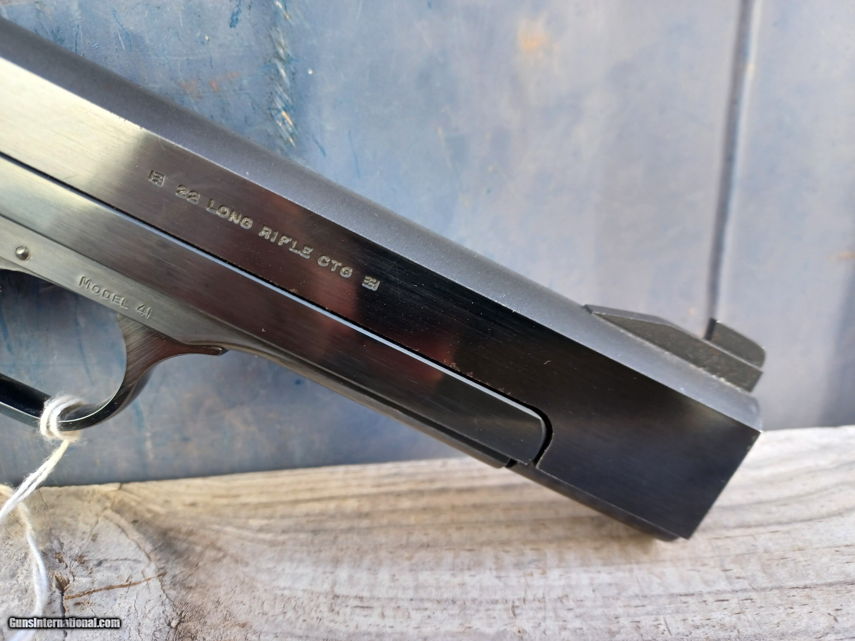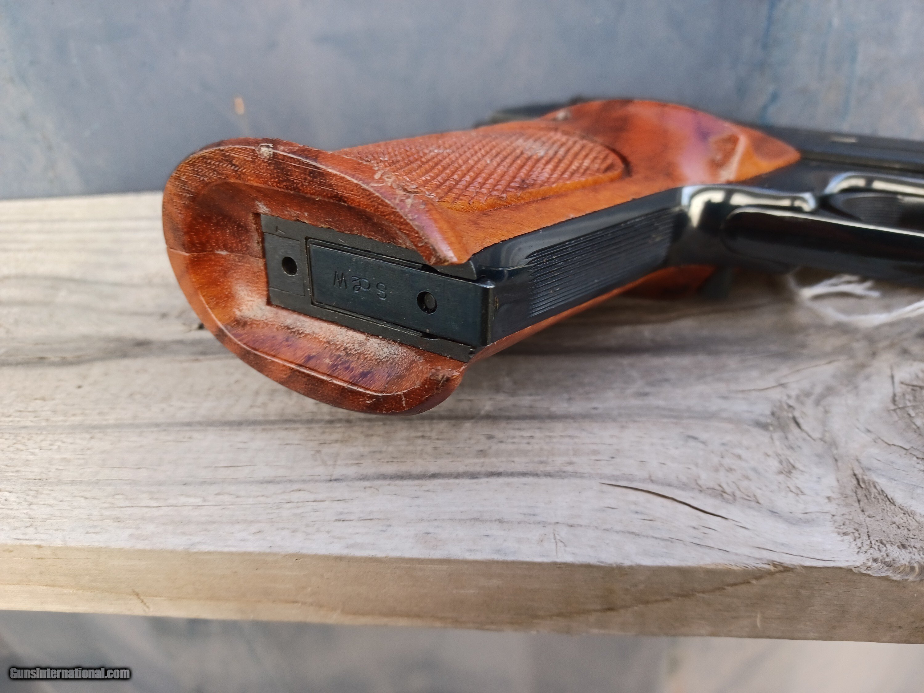 Description: Here is a very good Smith & Wesson 41 chambered for 22 LR. This pistol includes (1) magazine and will make a great target or plinking pistol. Thanks for looking! $25 shipping, Alaska and Hawaii will be a little more for shipping.han Please call with any questions. Please click the BUY NOW button to purchase this item. We are required to charge 8.25% for Texas residents. There is a 3.5% fee if paying by credit card. Handgun Caliber: .22 Long Rifle Manufacturer: Smith & Wesson Model: 41 Serial Number: TYN8133 Barrel Length: 5.5 Condition: Very Good Metal Condition: Very Good Wood Condition: Very Good Bore Condition: Very Good Price: $925.00 Buy Now Contact Seller |