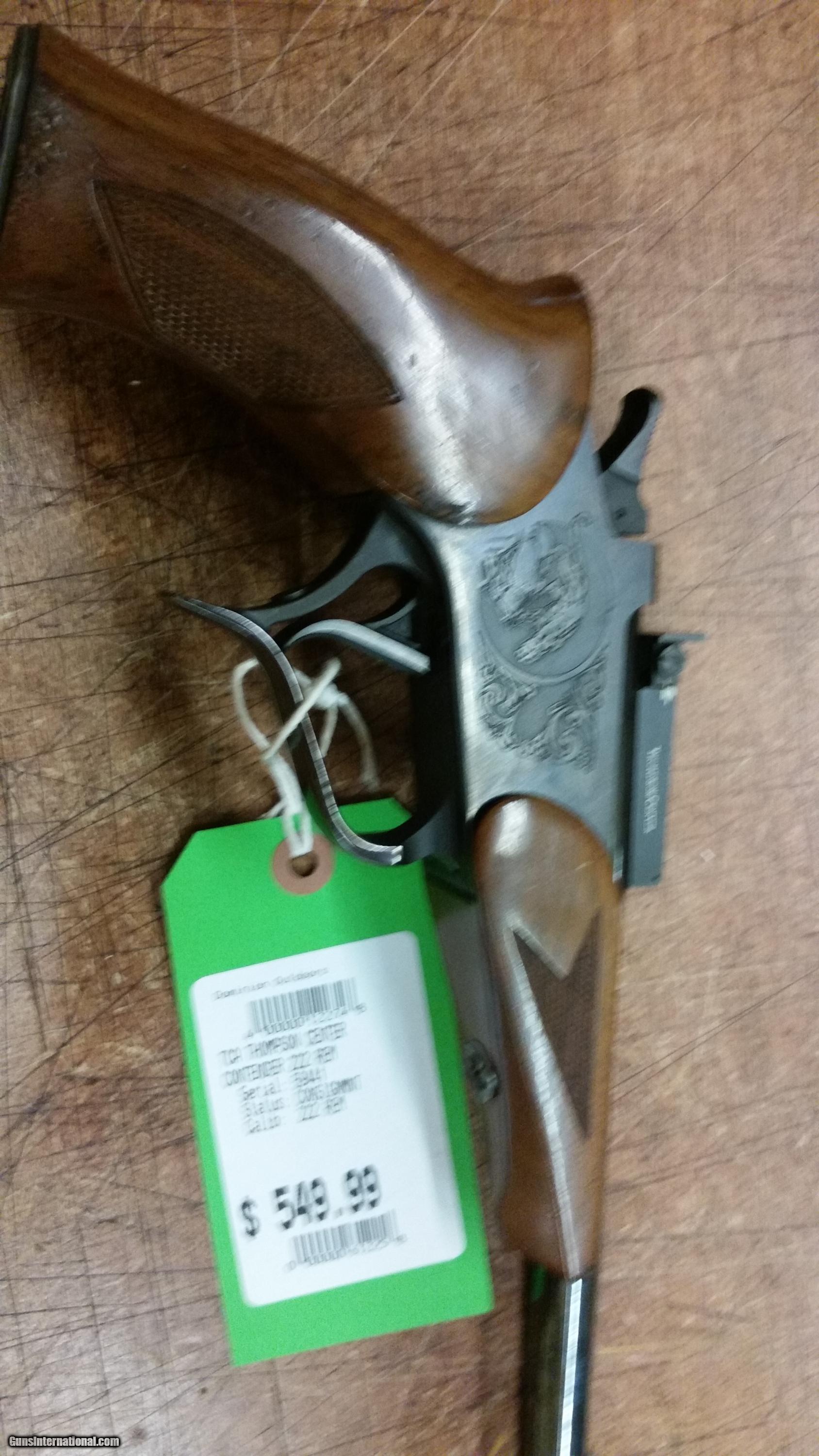Description: CONSINGMENT THOMPSONCENTER CONTENDER 222REM SINGLE SHOT PISTOL. BLUED BARREL AND FRAME WITH ENGRAVING. SMALL CRACK IN BUTT OF HANDLE. WE DO NOT SHIP FIREARMS AND/OR FIREARMS’ PARTS OUT OF THE 50 UNITED STATES, SO DON’T ASK PRICE REFLECTS PAYMENT BY MONEY ORDER / CASHIERS CHECK. A 3% PREMIUM IS ADDED FOR CREDIT CARDS. WE DO OFFER A LAYAWAY PLAN. YOU CAN LAYAWAY FOR 30, 60, OR 90 DAYS. THERE IS A $5.00 CHARGE FOR EVERY 30 DAYS ITEM IS ON LAYAWAY. WE ALSO REQUIRE A 20% DOWN PAYMENT ON LAYAWAY ITEM. LAYAWAYS ARE NON REFUNDABLE. DOMINION OUTDOORS 15 ANGELA COURT FISHERSVILLE ,VA 22939 540-337-9218 540-337-2422 fax HERE IS HOW THIS PROCESS WORKS. YOU WOULD CALL US AT 540-337-9218 WITH LISTER # TO PURCHASE THE GUN. THEN ONCE I HAVE RECEIVED PAYMENT AND AN FFL (FEDERAL FIREARMS LICENSE) FROM A LICENSED DEALER IN YOUR AREA OF YOUR CHOICE, I WOULD THEN SHIP THE GUN TO THEM. YOU WOULD THEN PICK UP THE GUN AT YOUR LOCAL DEALER AND DO PAPER WORK THERE. *PLEASE CALL IN THE WITH THE LISTER INVENTORY NUMBER* SOLD |