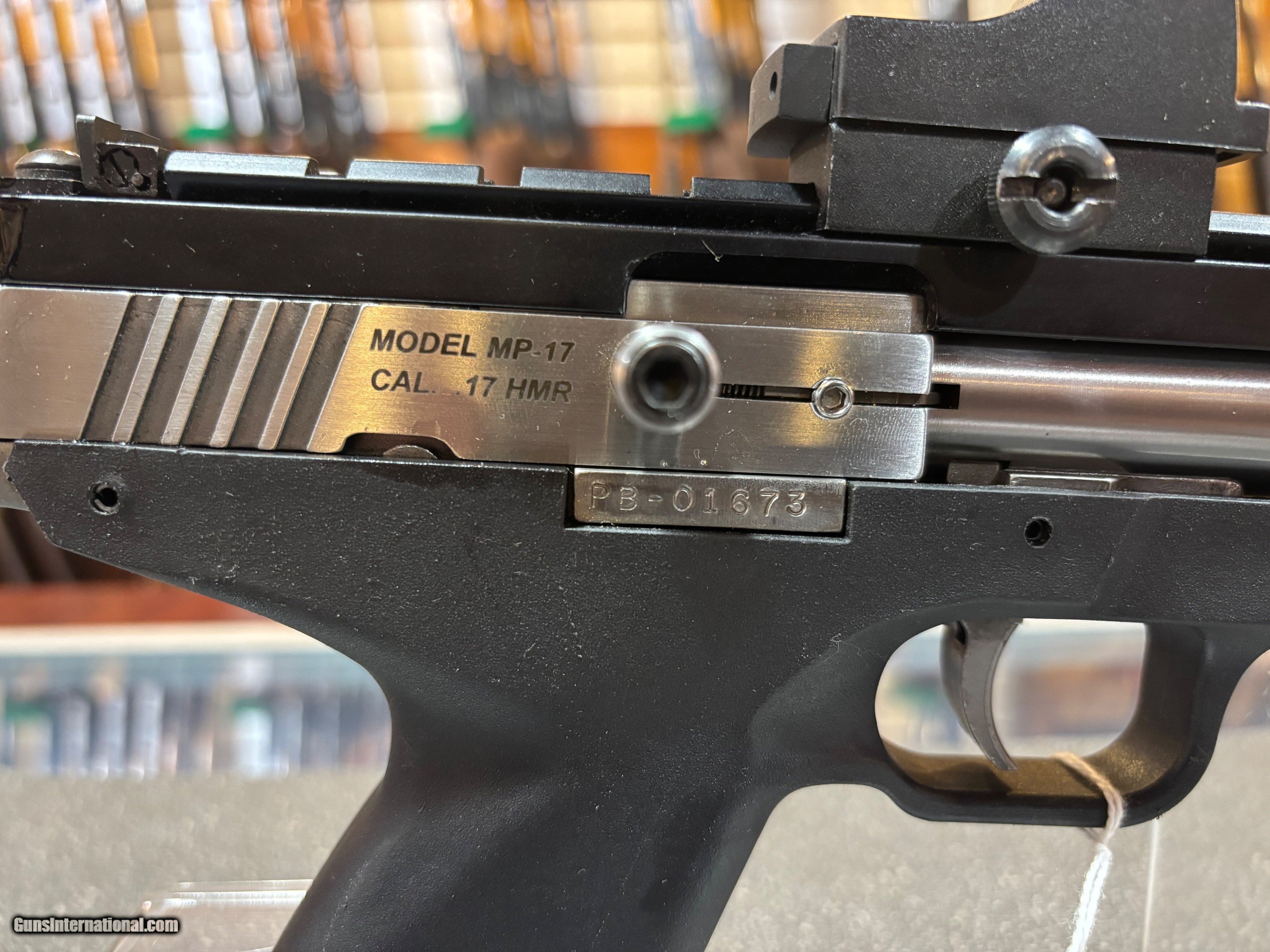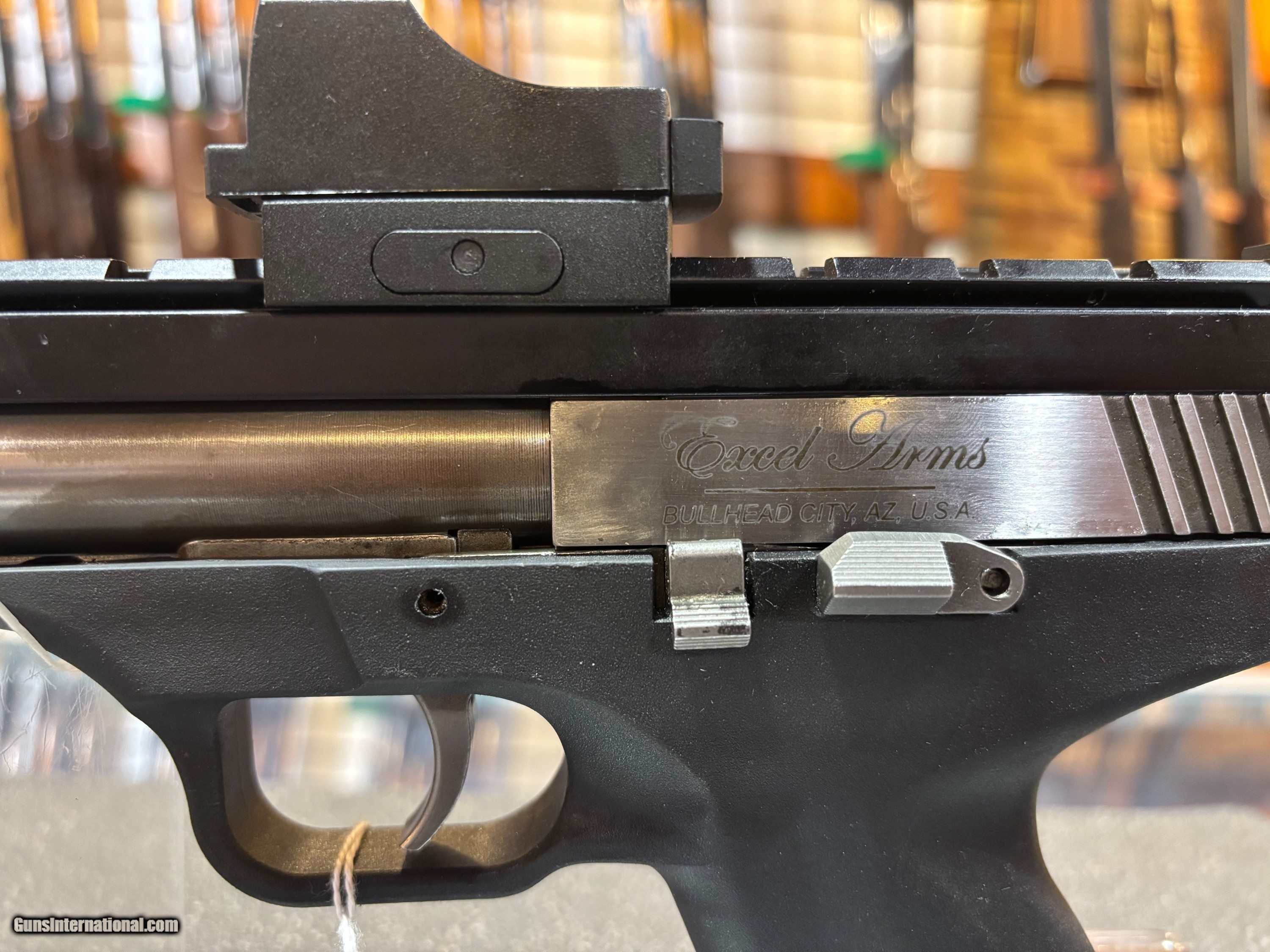 Description: USED Excel Arms MP-17 Accelerator .17hmr Semi-automatic 9 rounc capacity (3) magazines included Included red dot optic NO BOX NO MANUAL SOLD Handgun Caliber: .17 HMR Manufacturer: Excel Arms Model: MP-17 Accelerator Serial Number: PB-01673 Barrel Length: 8.5 Condition: GOOD |