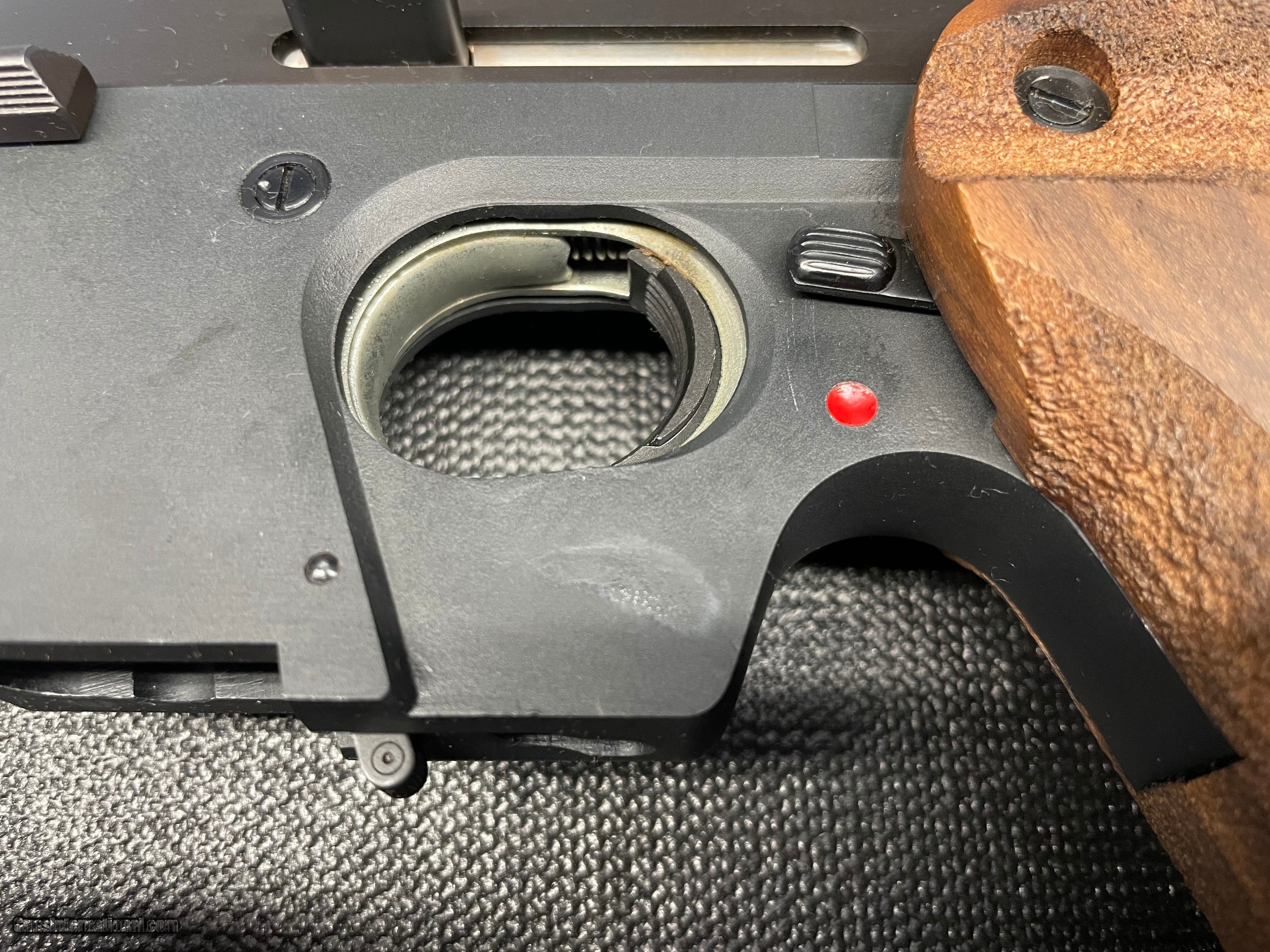 Description: Walther GSP .22 LR target pistol. 5 round magazine Adjustable walnut target grips Original box and paperwork $950 + $40 shipping This gun is in excellent condition, however there is a blemish near the trigger (see pictures). It looks like it could be a stain from solvent. Please call 208-880-8212 for more information and pictures. SOLD Handgun Caliber: .22 Long Rifle Manufacturer: Walther Model: GSP |