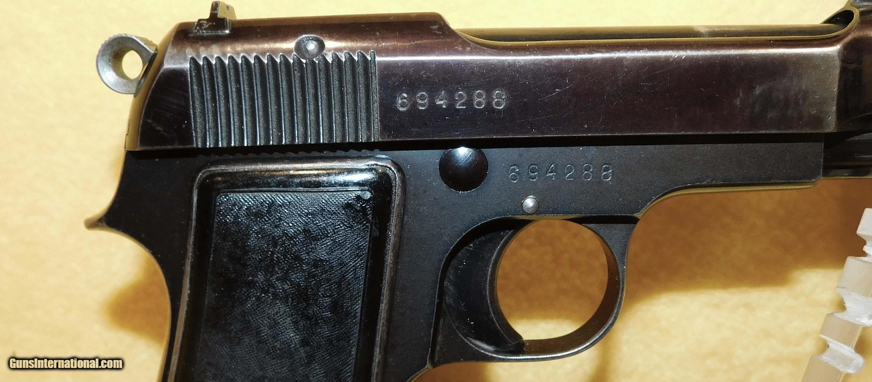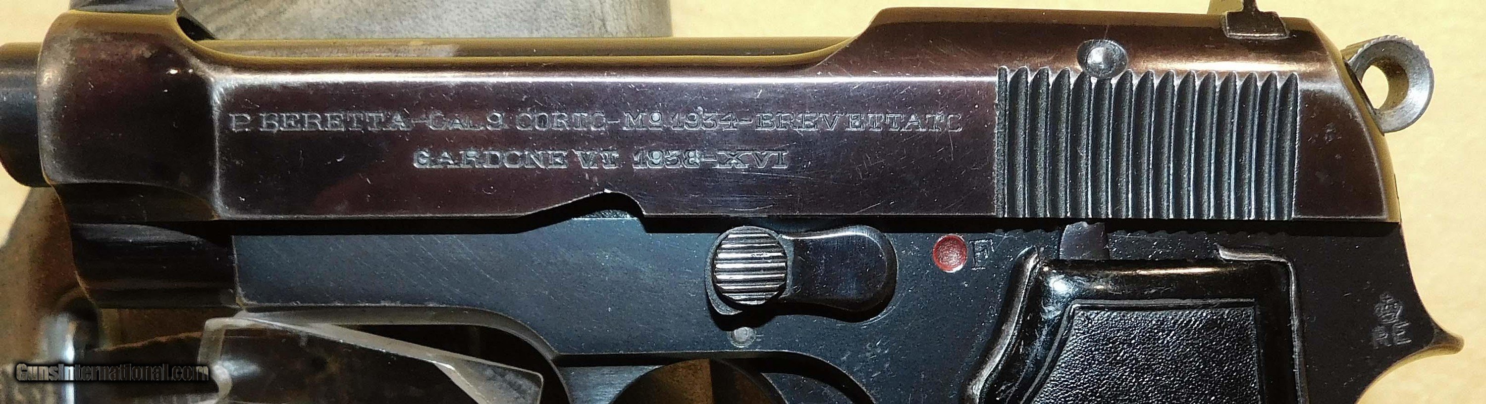 Description: BERETTA 1934 IN .380 ACP CAL., WITH 3 .38" BARREL. COLOR BLUE. CONDITION 85%. SERIAL NUMBER 694288. BERETTA MODEL 1934 IN .380 ACP CALIBER, BRIGHT BORE, GRIPS VERY GOOD, COMES WITH TWO FACTORY MAGAZINES, PERIOD HOLSTER, 85% OVERALL CONDITION, OUR STOCK # D4086 SOLD |