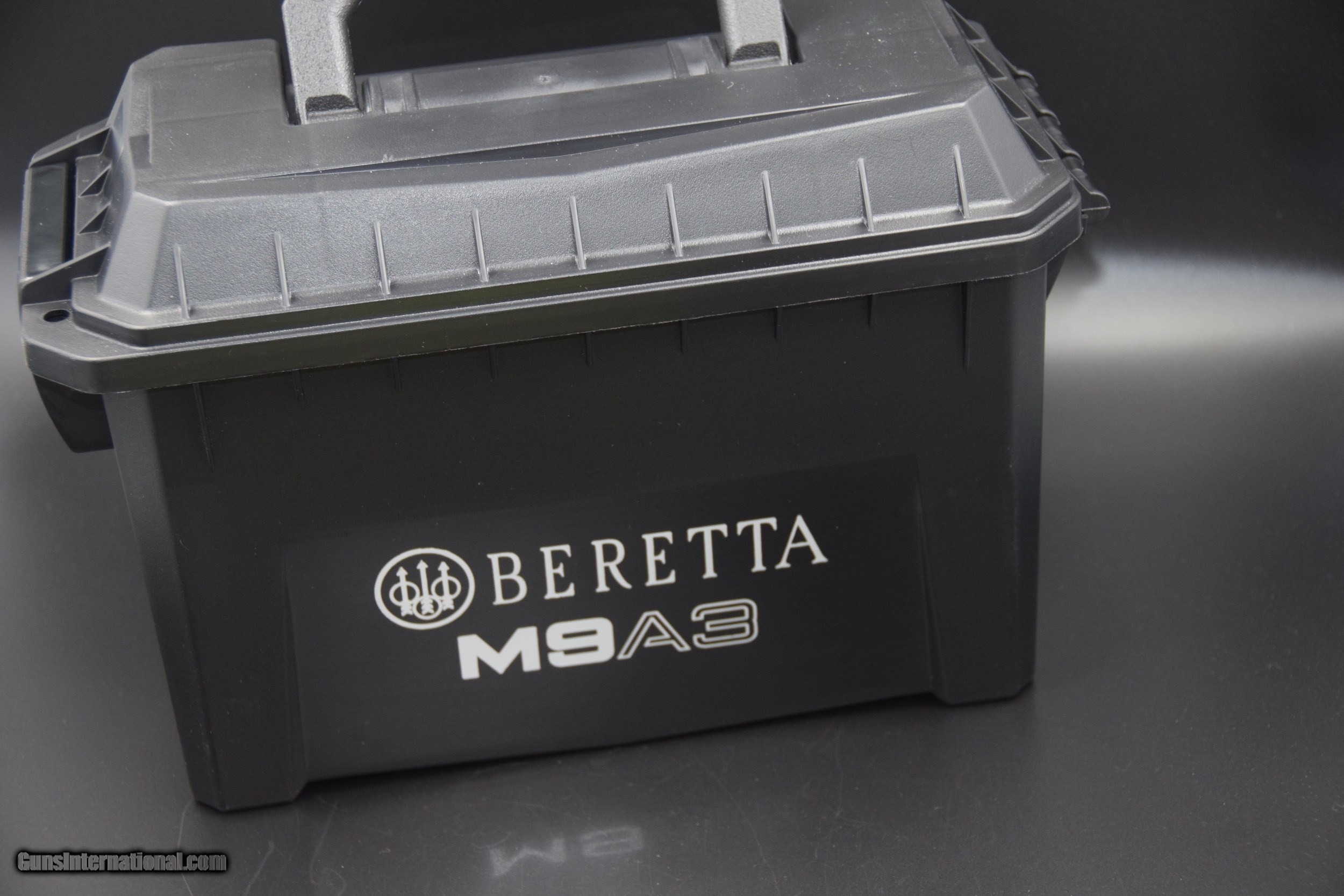 Description: Here's a NEW BERETTA MODEL M9A3 IN BLACK, 9 MM MILITARY PISTOL. It ships with 3 MAGAZINES, NIGHT SIGHTS, A THREADED BARREL, and RAIL SYSTEM. The price has been REDUCED to ONLY $799.95, plus $25 for shipping, handling, and insurance. Use a credit card and add $25 to the total. It's packed in "Beretta" embosed plastic "ammo can". SOLD |