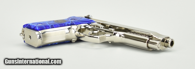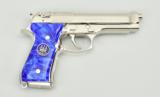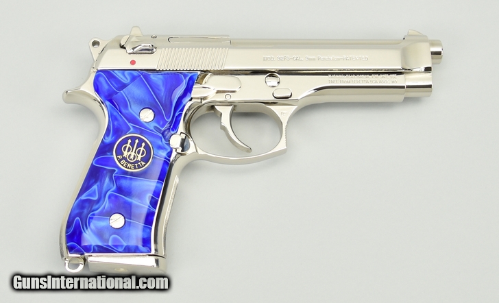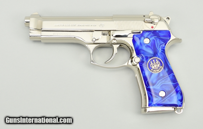 Description: Beretta 92 FS 9mm caliber pistol. Customized with bright nickel finish and fancy grips. SOLD |