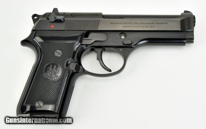 Beretta 92 SB Compact 9mm Para caliber pistol. Scarce Italian made compact model. The 92 SB is the predecessor to the 92F, and has a polished blue finish and round trigger guard. Excellent condition with box and extra magazine.