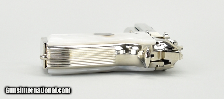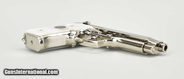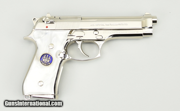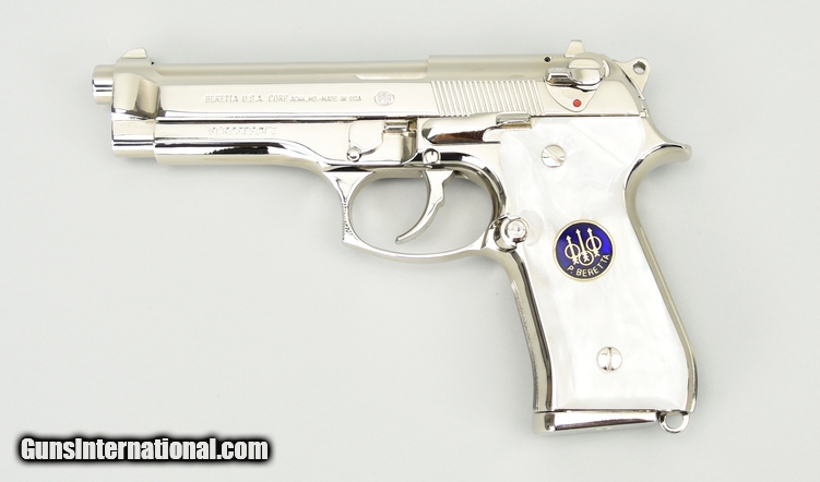 Description: Beretta 92FS 9mm caliber pistol. Customized with bright nickel finish and fancy grips. SOLD |