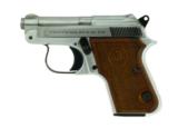 Beretta 950 B .25 ACP caliber pistol. Italian made pocket pistol. Has silver finish and wood grips. Very good condition.