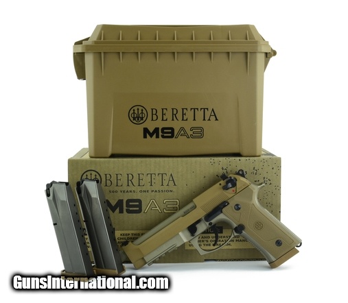 Description: Beretta M9A3 9mm caliber pistol. Tactical model with FDE finish and threaded barrel. New.