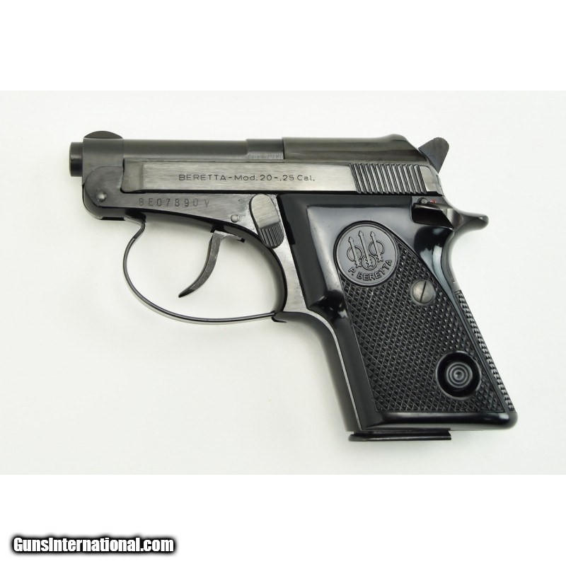 Description: "Beretta 20 .25 caliber pistol. Scarce double action model 1980’s vintage in excellent condition with box. SOLD |