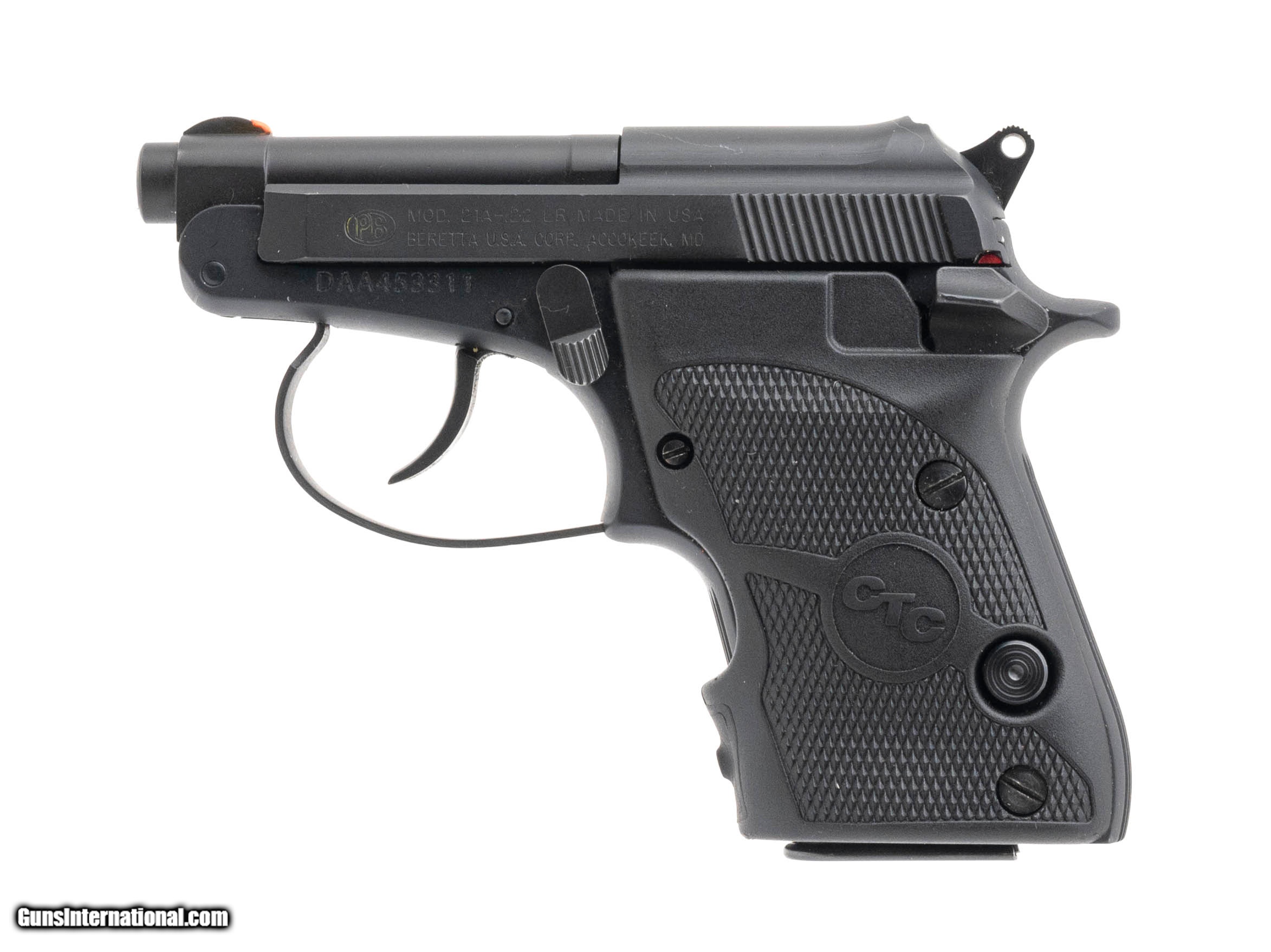 Description: "SN: DAA453311. Modern made .22LR with a 2.5"" barrel. Pocket pistol with tip up barrel. Has a Crimson Trace laser grip added. Paint has been added to the sights for better visibility. Excellent condition with box. SOLD |