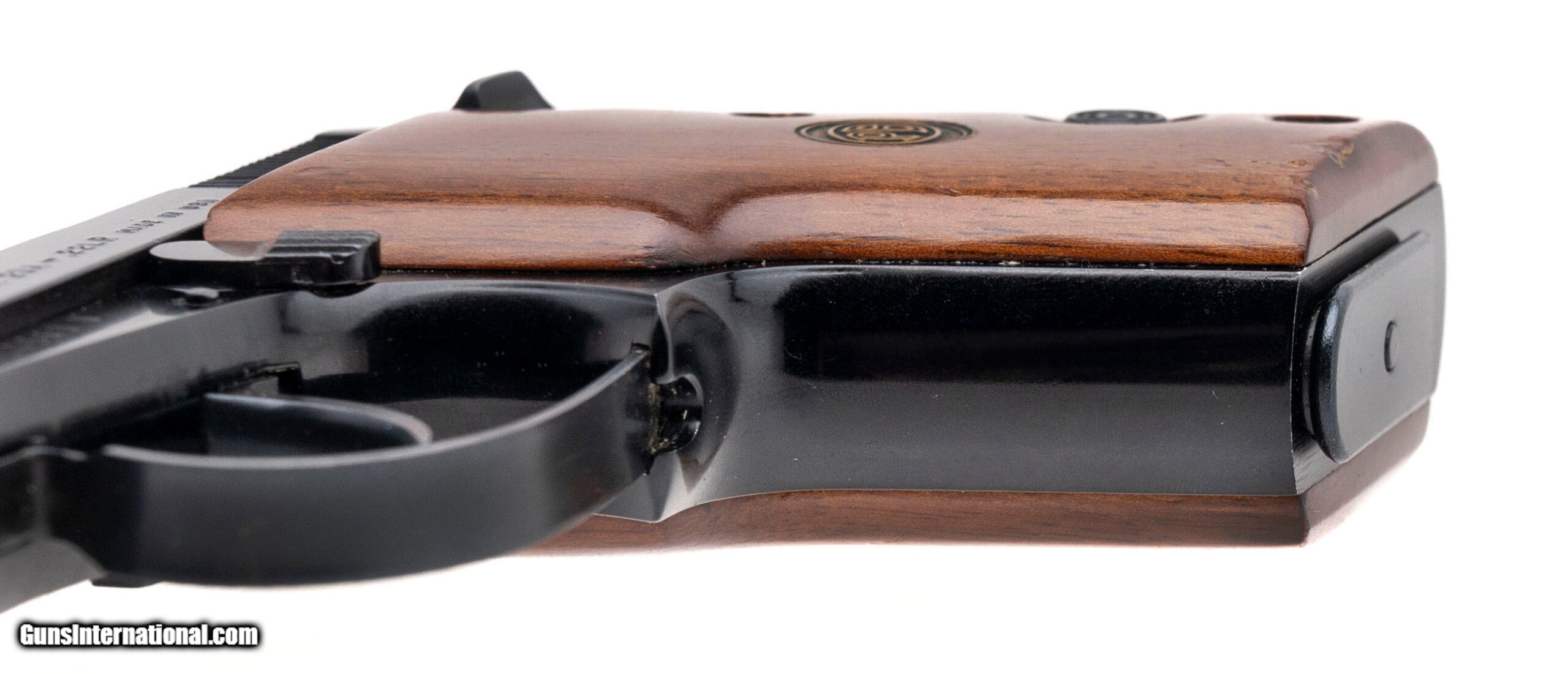 Description: "SN: BAS21563U. 1990's production .22LR with a 2.4"" barrel. Pocket pistol with flip up barrel, blue finish and wood grips. Very good condition with box. SOLD |