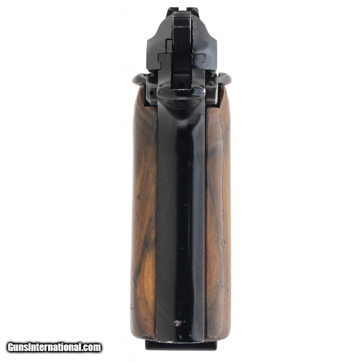 Description: " SN: D21555W. Scarce compact carry model with 3.75"" barrel and thumb safety. The front strap of the grip has an import mark. Overall good condition. Comes with non-original box, extra grips and 2 extra magazines. SOLD |