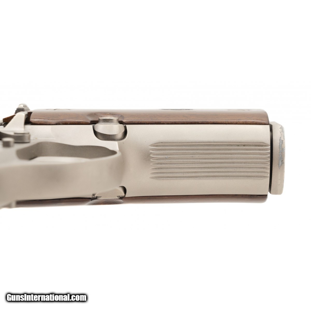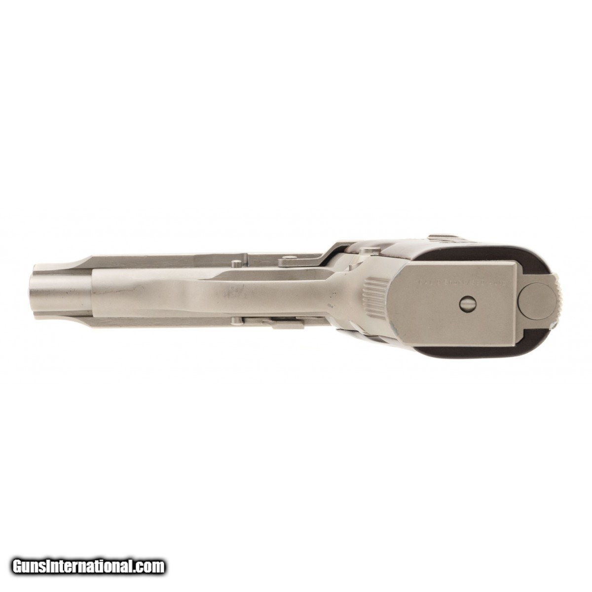 Description: " SN: B82350Y. Popular 13rd compact pistol with satin nickel finish. Has a bit of wear and light rust speckling, overall very good condition. SOLD |