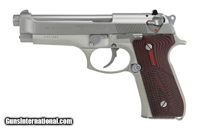 Description: " Beretta 92FS 9mm caliber pistol. Stainless Inox model with custom G10 grips. Very good condition.