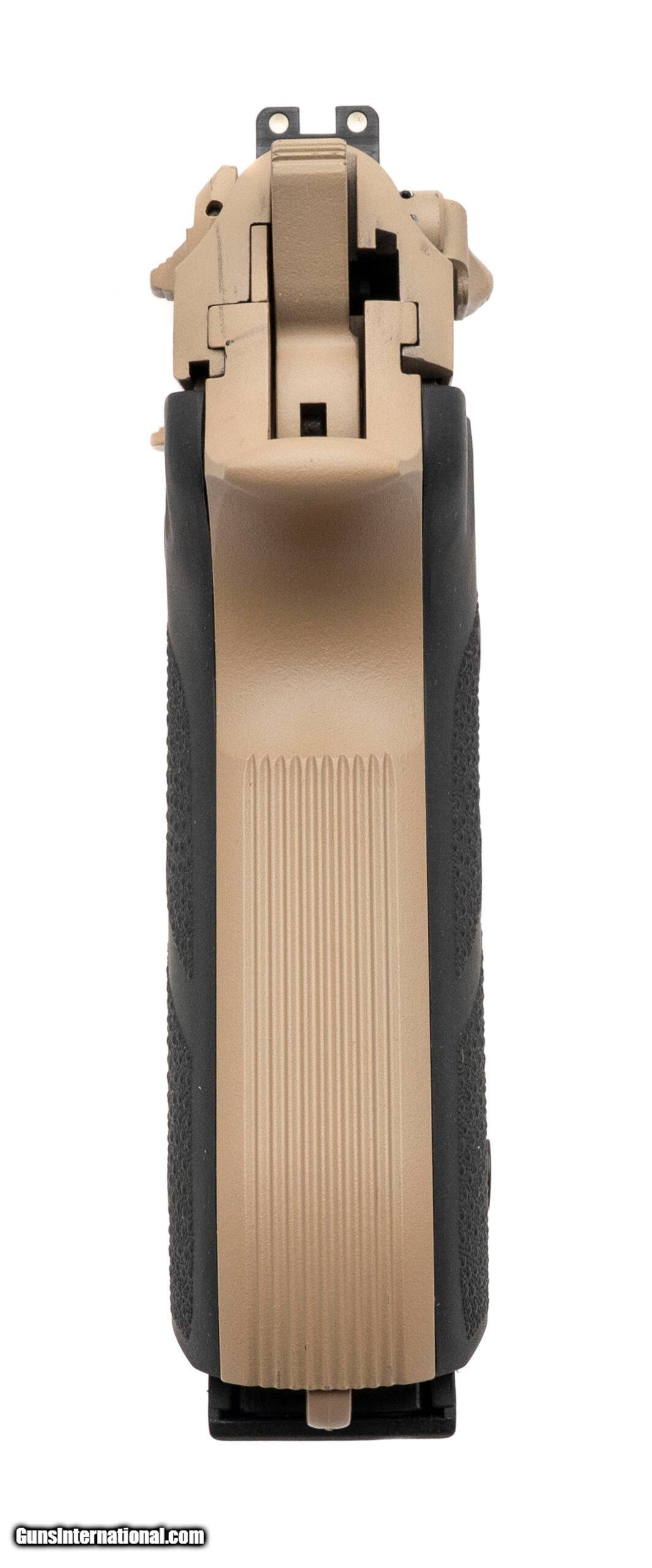 Description: "SN: BER270394. Modern production, 9mm with a 5"" barrel. Bore is excellent. Full size semi-auto pistol with 3 dot sights, ambidextrous manual thumb safety/decocker, custom tan finish, and black rubber medallion grips. Finish shows minor handling marks. Overall condition is near excellent. SOLD |