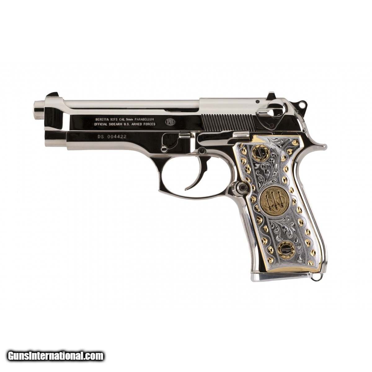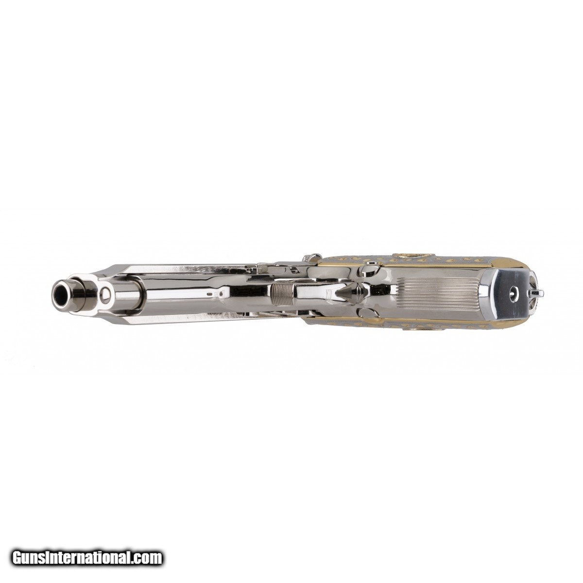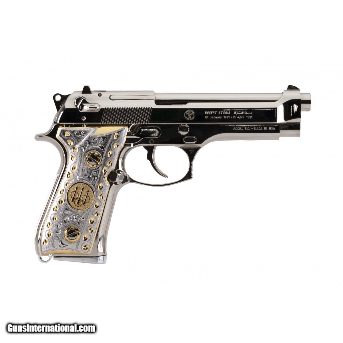 Description: " Desert Storm Limited Edition 9mm. Has been customized with bright nickel finish and fancy silver and gold plated grips. A beauty fit for a 5 star General! SOLD |