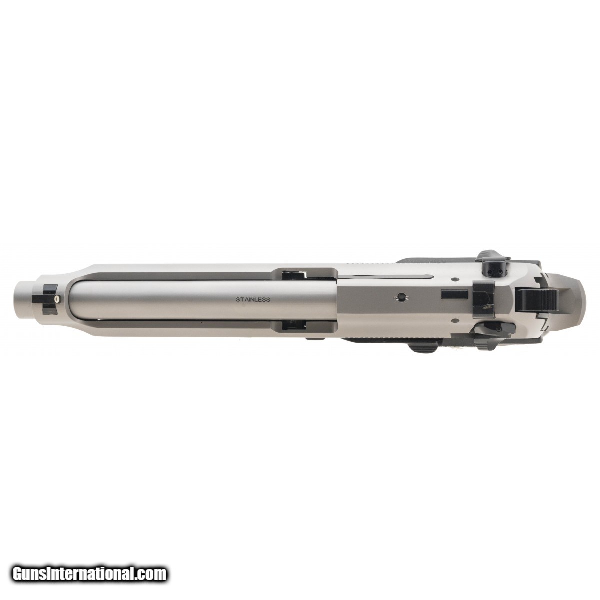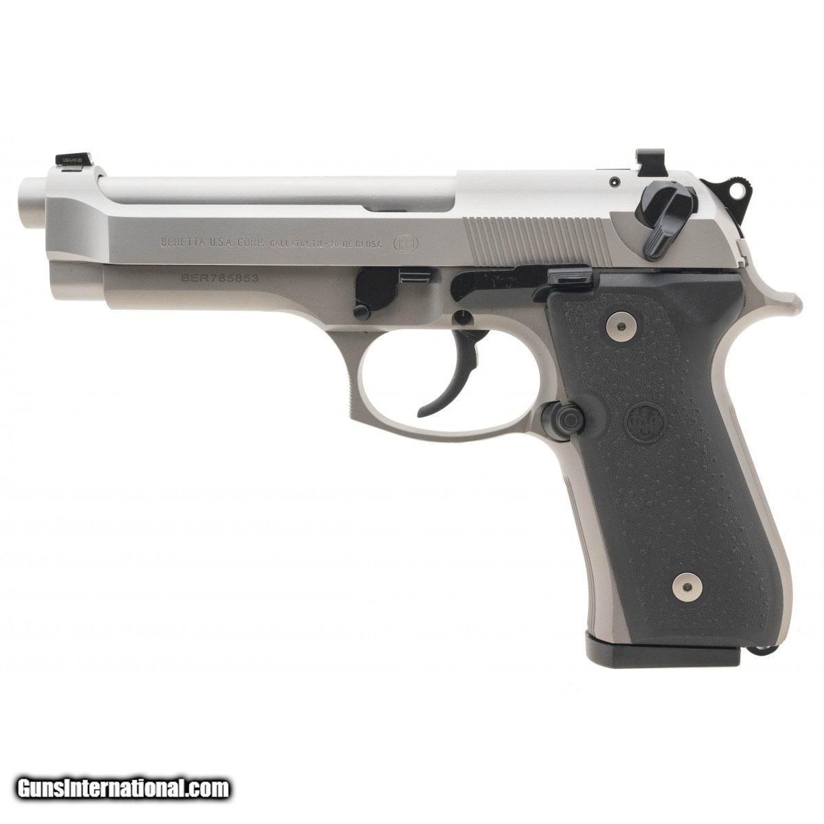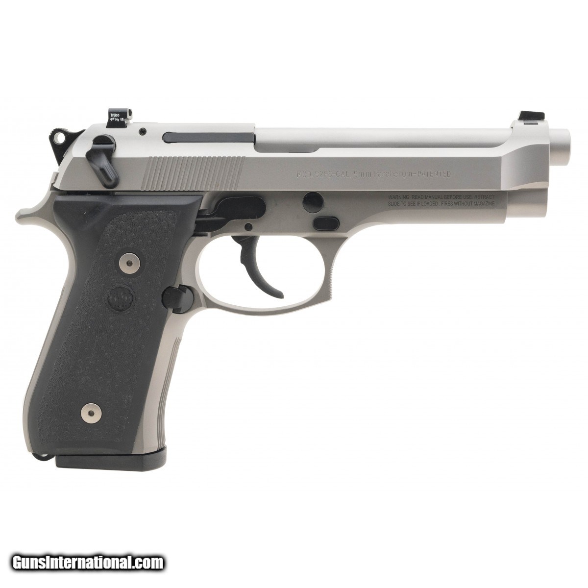 Description: " SN:BER785853. Full size 5"" sidearm in a satin stainless finish with rubber grips and steel guide rod. In excellent condition. Comes with box, lock, and two spare magazines. SOLD |