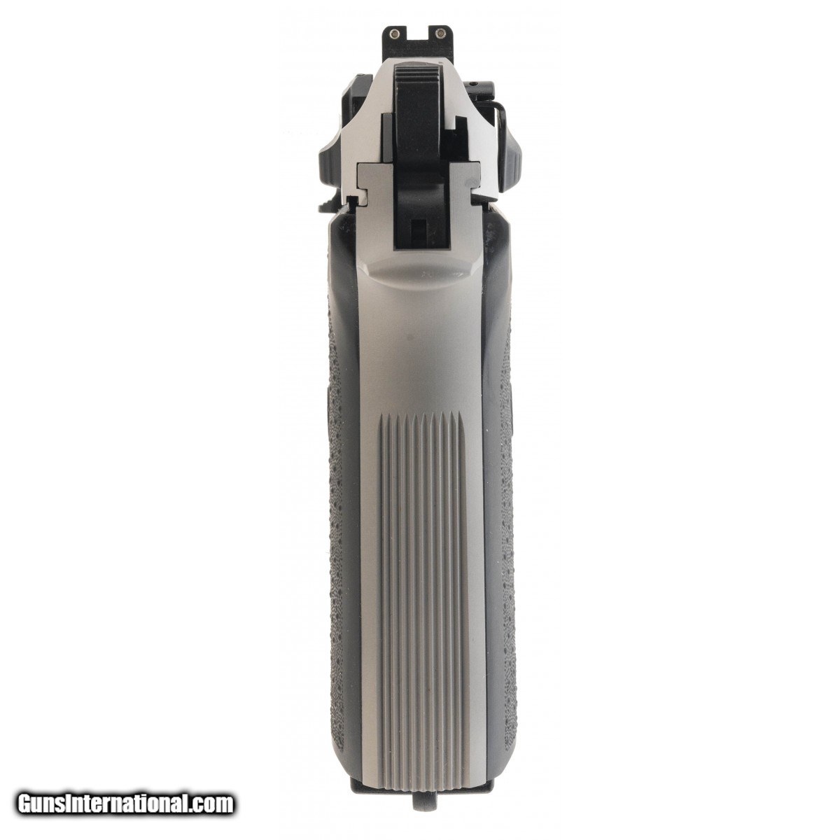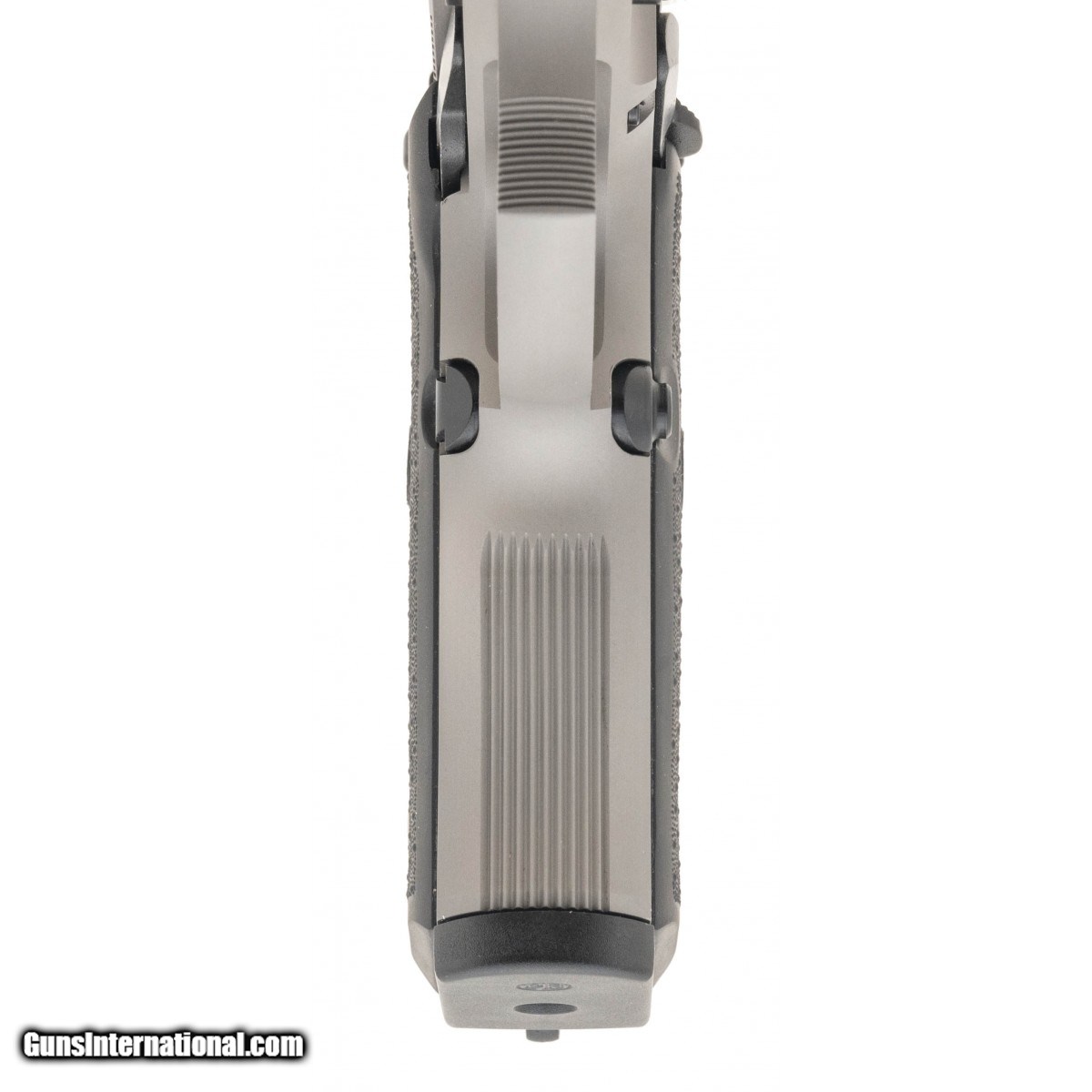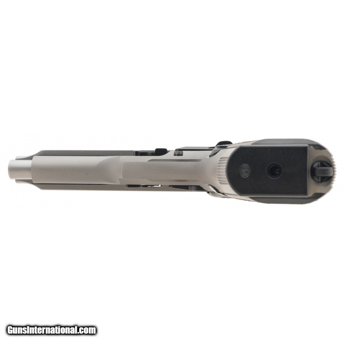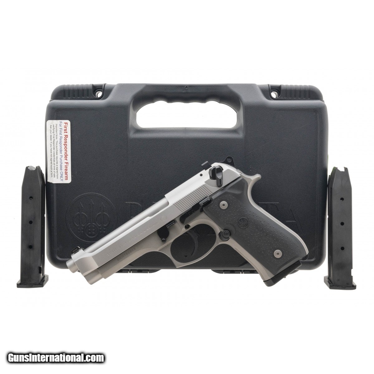 Description: " SN:BER785853. Full size 5"" sidearm in a satin stainless finish with rubber grips and steel guide rod. In excellent condition. Comes with box, lock, and two spare magazines. SOLD |
