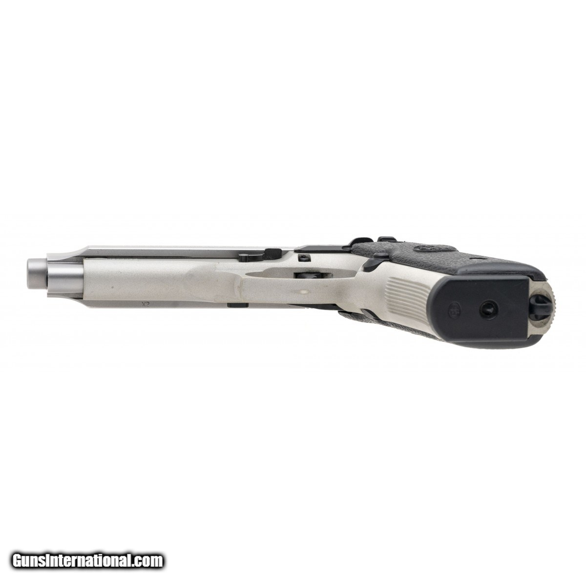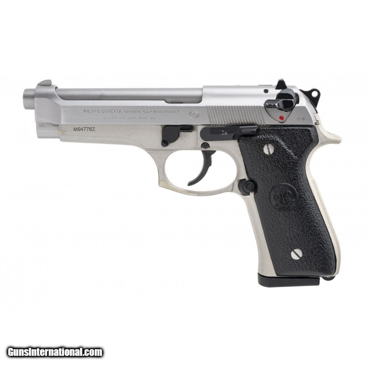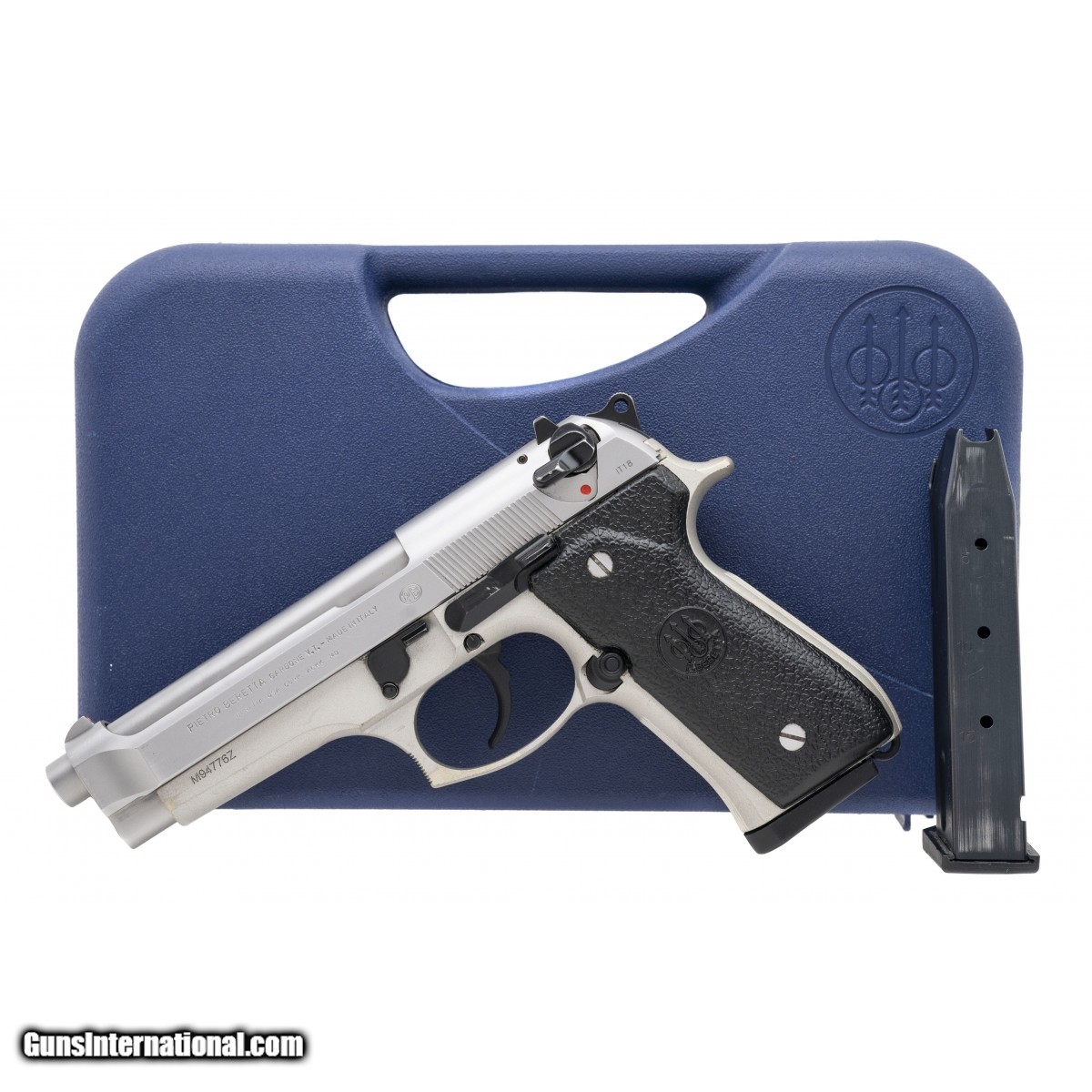 Description: "SN: M94776Z. modern production. 9mm with a 4.9"" barrel. Bore is in excellent condition. Full size stainless pistol. Finish and grips are in very good condition with holster wear noted. Overall condition is very good. Comes with case and 1 extra magazine. SOLD |