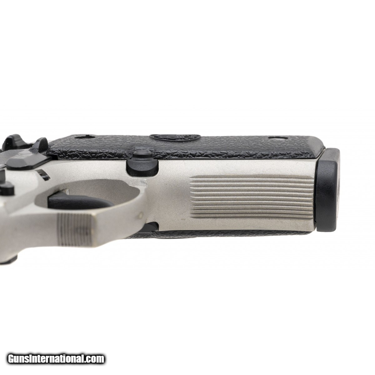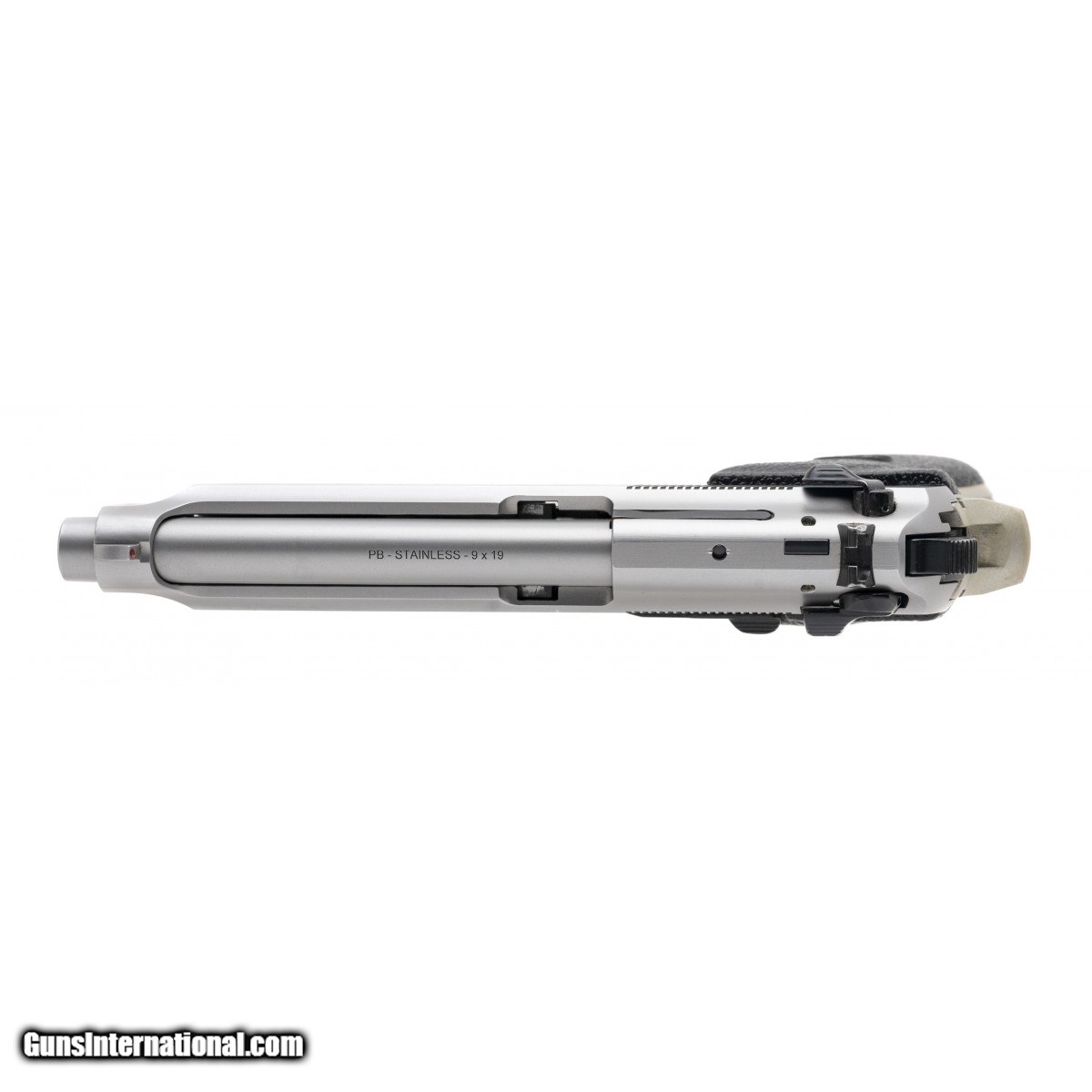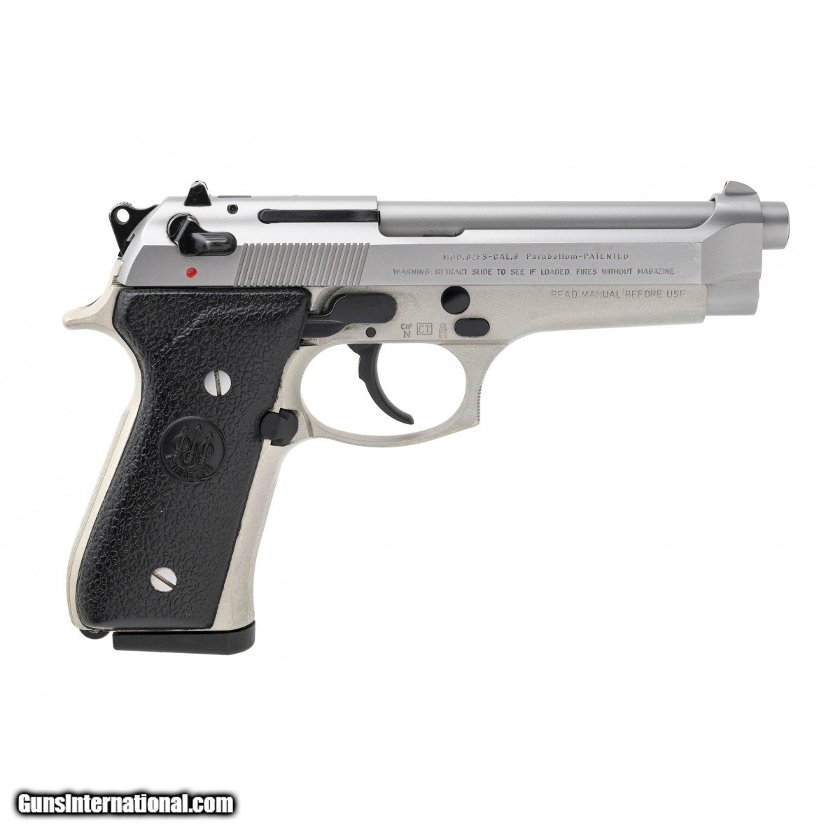 Description: "SN: M94776Z. modern production. 9mm with a 4.9"" barrel. Bore is in excellent condition. Full size stainless pistol. Finish and grips are in very good condition with holster wear noted. Overall condition is very good. Comes with case and 1 extra magazine. SOLD |