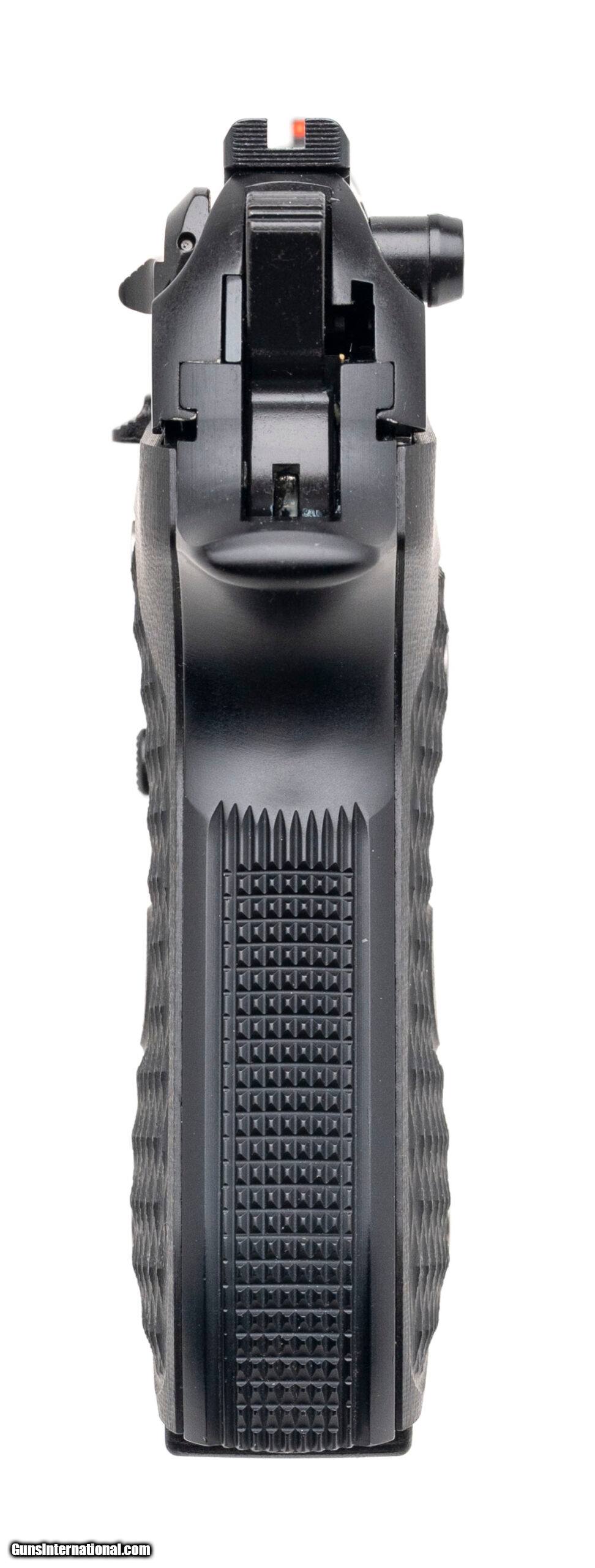 Description: "SN: LTT000164. Modern production, 9mm with a 4.7"" Inox barrel. Bore is excellent. Langdon Tactical tuned double-action full size pistol with a fiber-optic front sight, ambidextrous manual thumb-safety/decocker, accessory rail, matte black finish, and G10 grips. Finish shows light marks. Overall condition is near excellent. Includes an additional magazine, case, and box. Price: $849.95 Contact Seller |