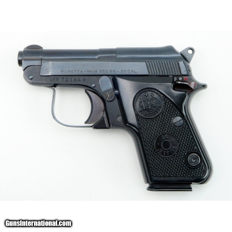 Description: "Beretta 950BS .25 ACP caliber pistol. Pocket pistol with tip-up barrel. Excellent condition. SOLD |