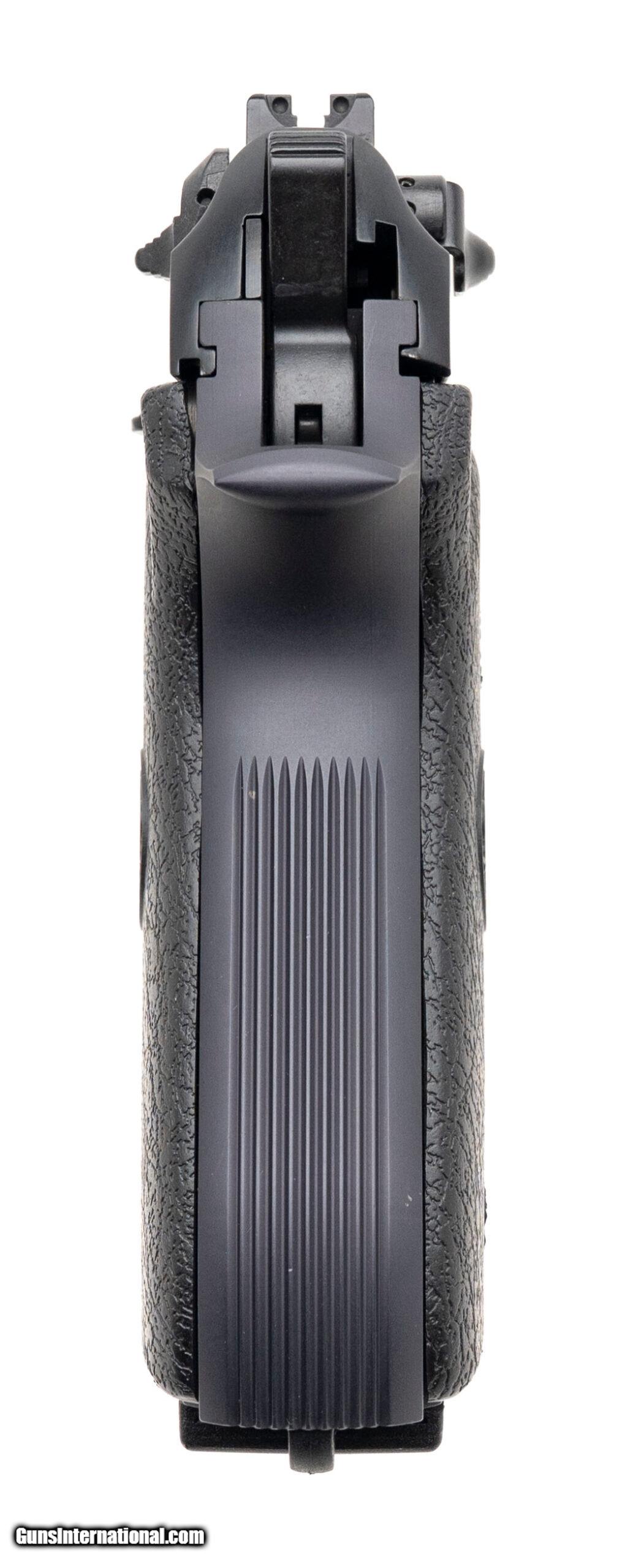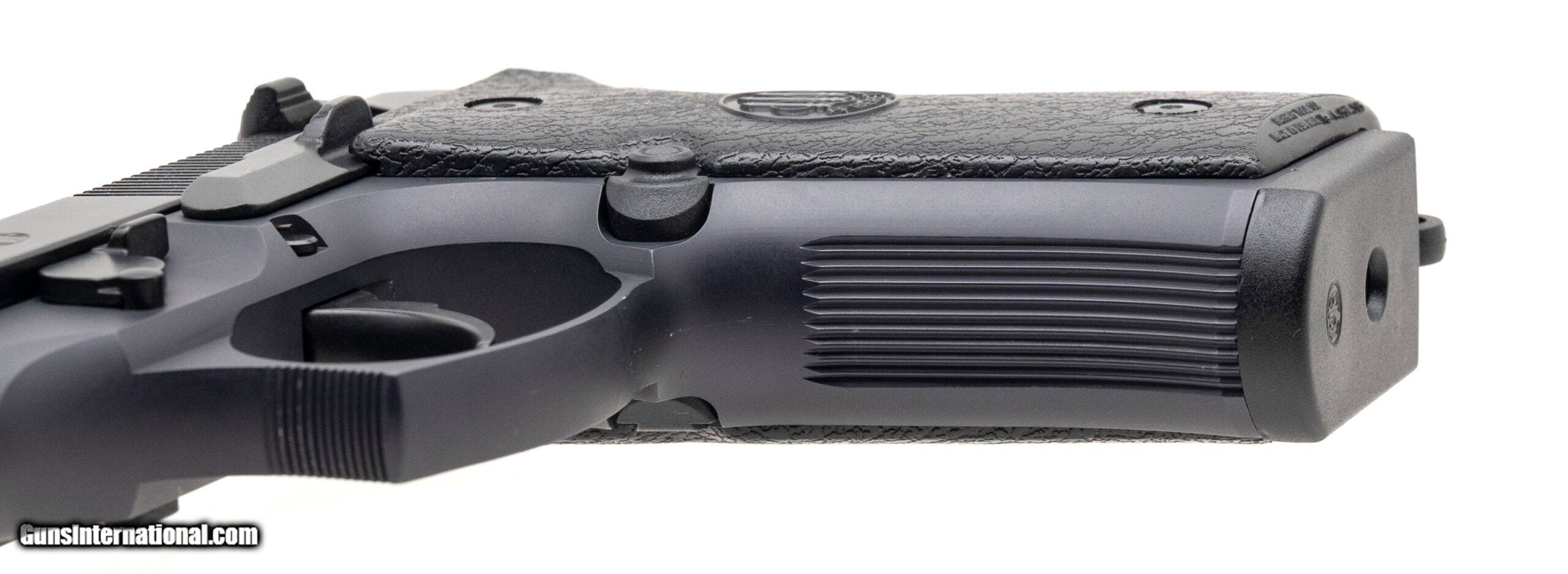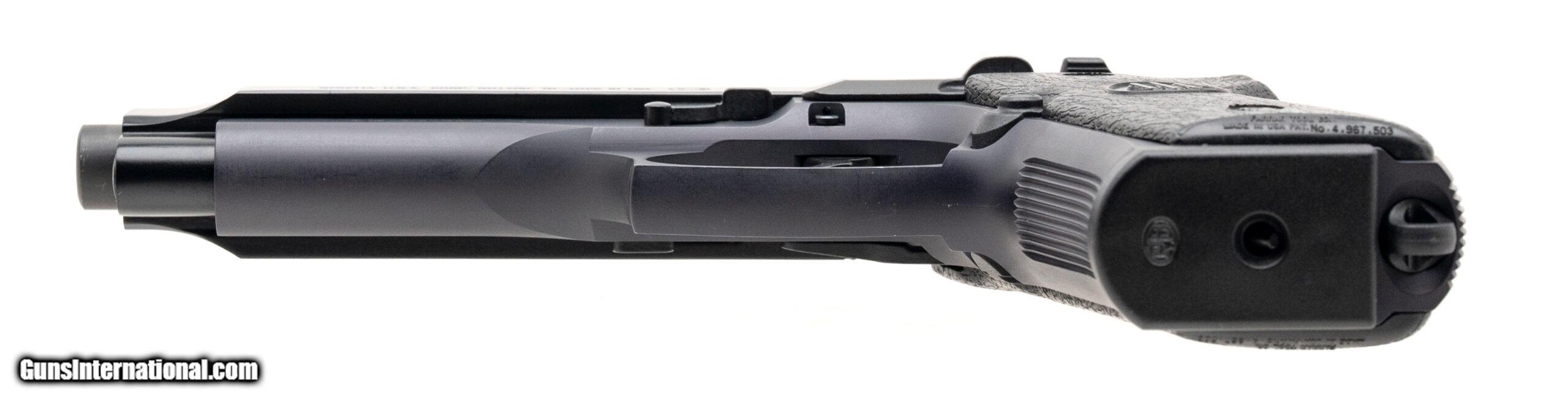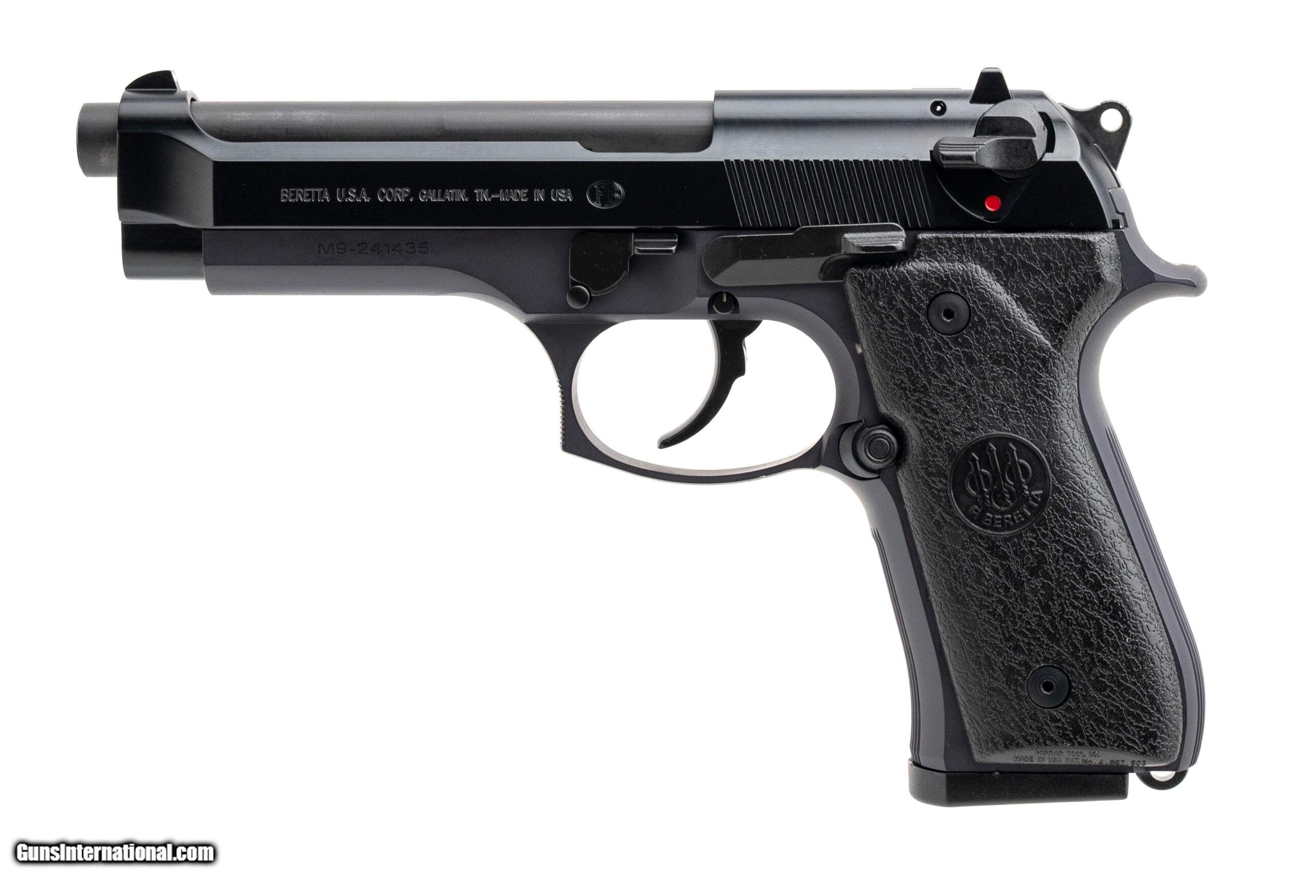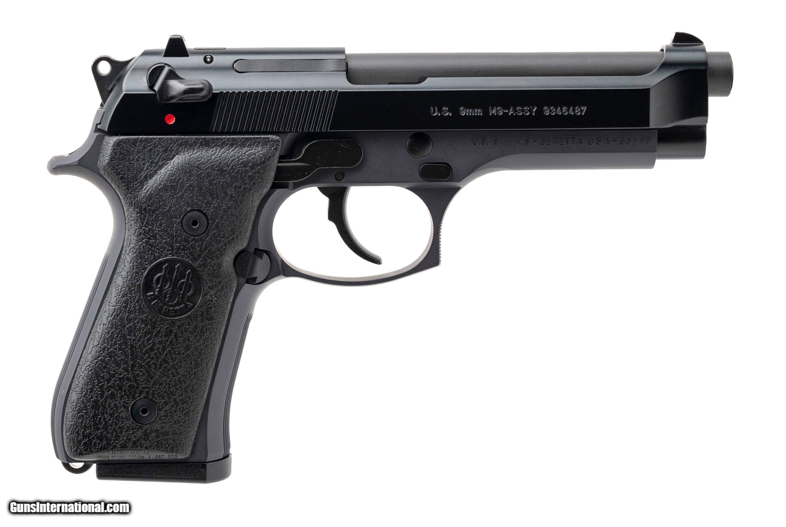 Description: "SN: M9-241435. Modern production, 9mm with a 4.9"" barrel. Bore is excellent. Full size double action pistol with ambidextrous safety/decocker, aluminum frame, two-tone finish, and black rubber medallion grips. Finish shows minor marks to frame. Includes additional magazine, and original carry case. Overall condition is very good. SOLD |