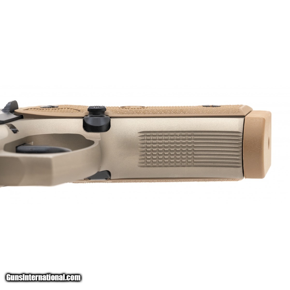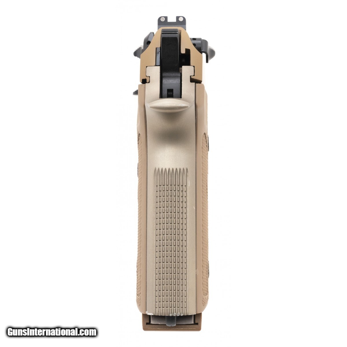 Description: " SN:B004196Z. Semi-automatic 5.2"" hammer fired pistol in a two tone FDE with H3-16 night sights. In excellent condition. Comes in a beige range bag with two spare 17RD magazines. SOLD |
