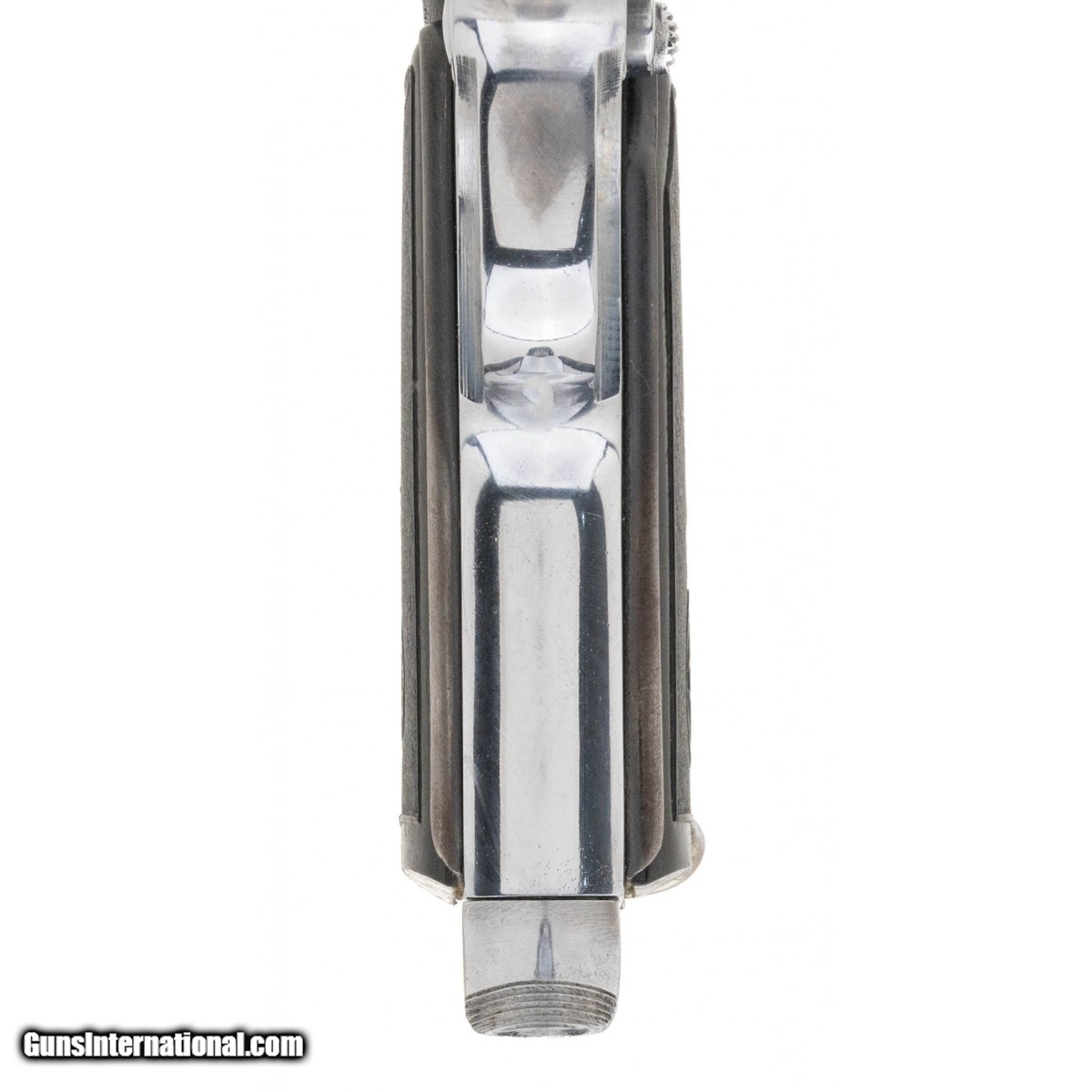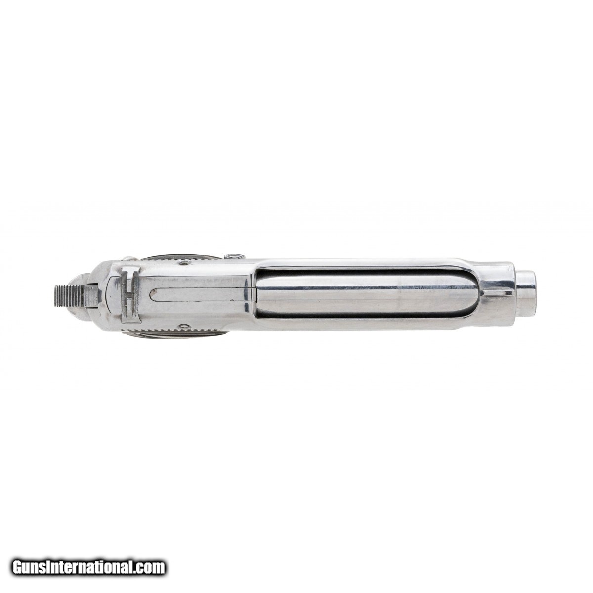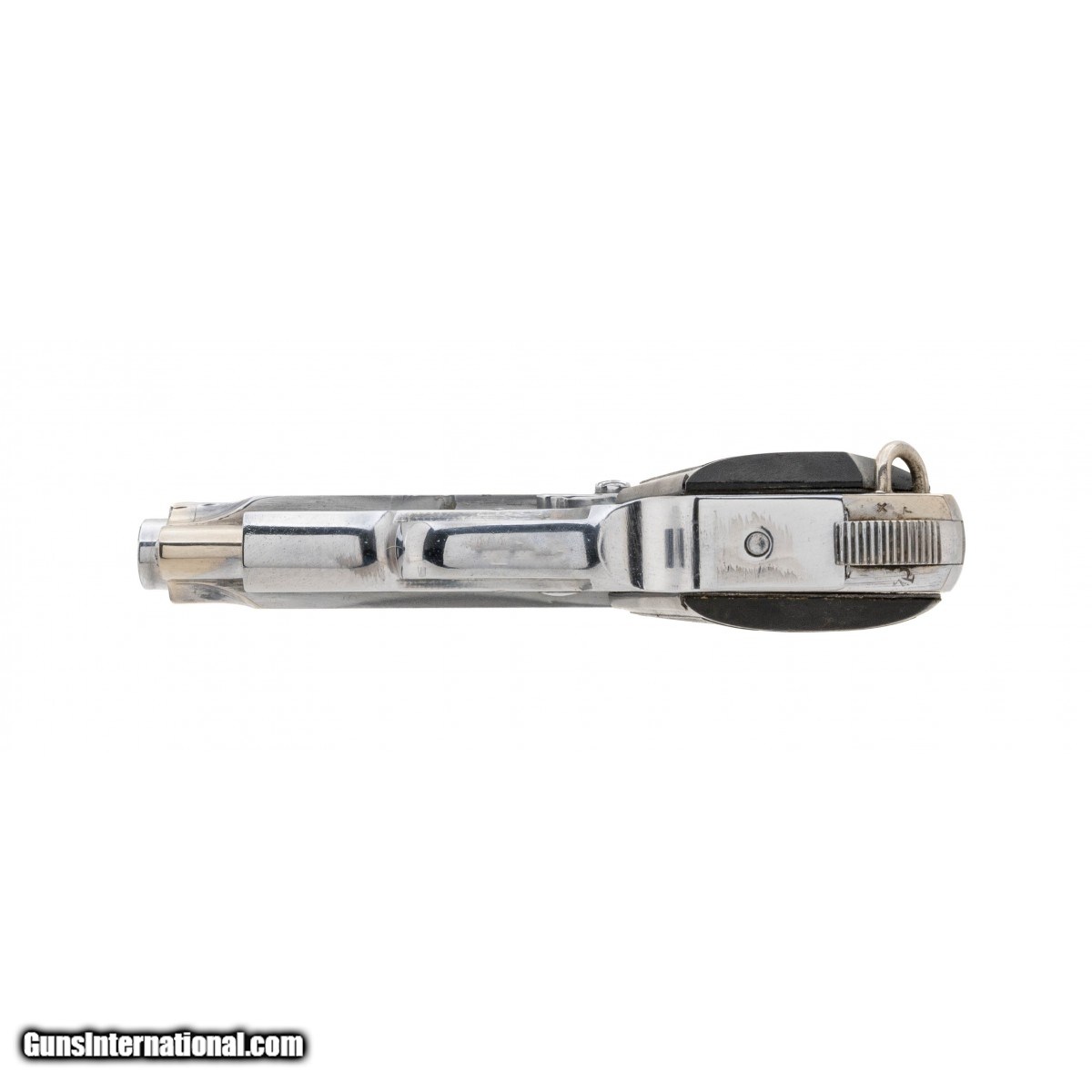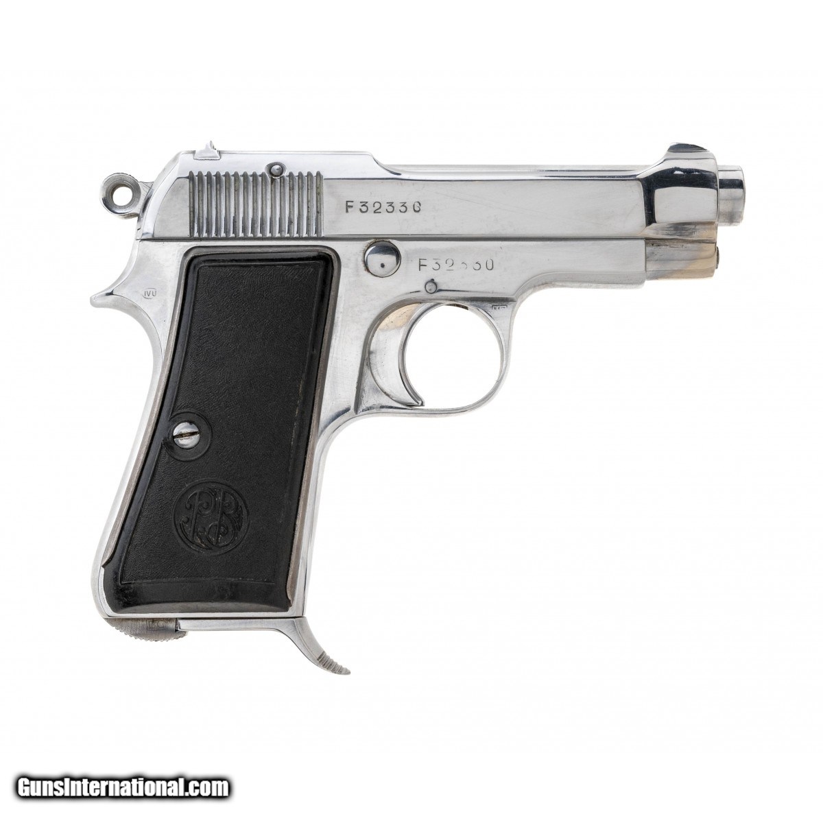 Description: " SN: F32330. Mfg in 1944, .380 ACP, 3.5-inch barrel. Pistol has been chrome plated but is nevertheless in very good condition with an excellent bore. Comes with original Beretta plastic grips & 7-round magazine. SOLD |