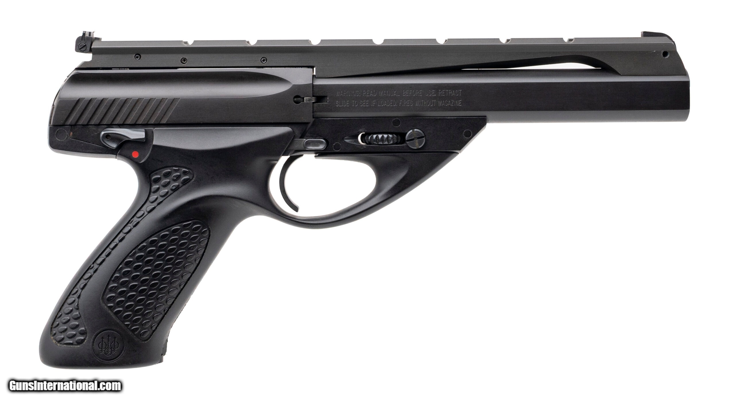 Description: "SN: R17100. Modern production, .22LR with a 6"" barrel. Bore is excellent. Italian made rimfire pistol with a cocking indicator, scope mounting rail, adjustable rear sight, ambidextrous manual thumb-safety, matte black finish, and black polymer grips. Finish shows minor handling marks throughout. Overall condition is very good. Price: $449.95 Contact Seller |
