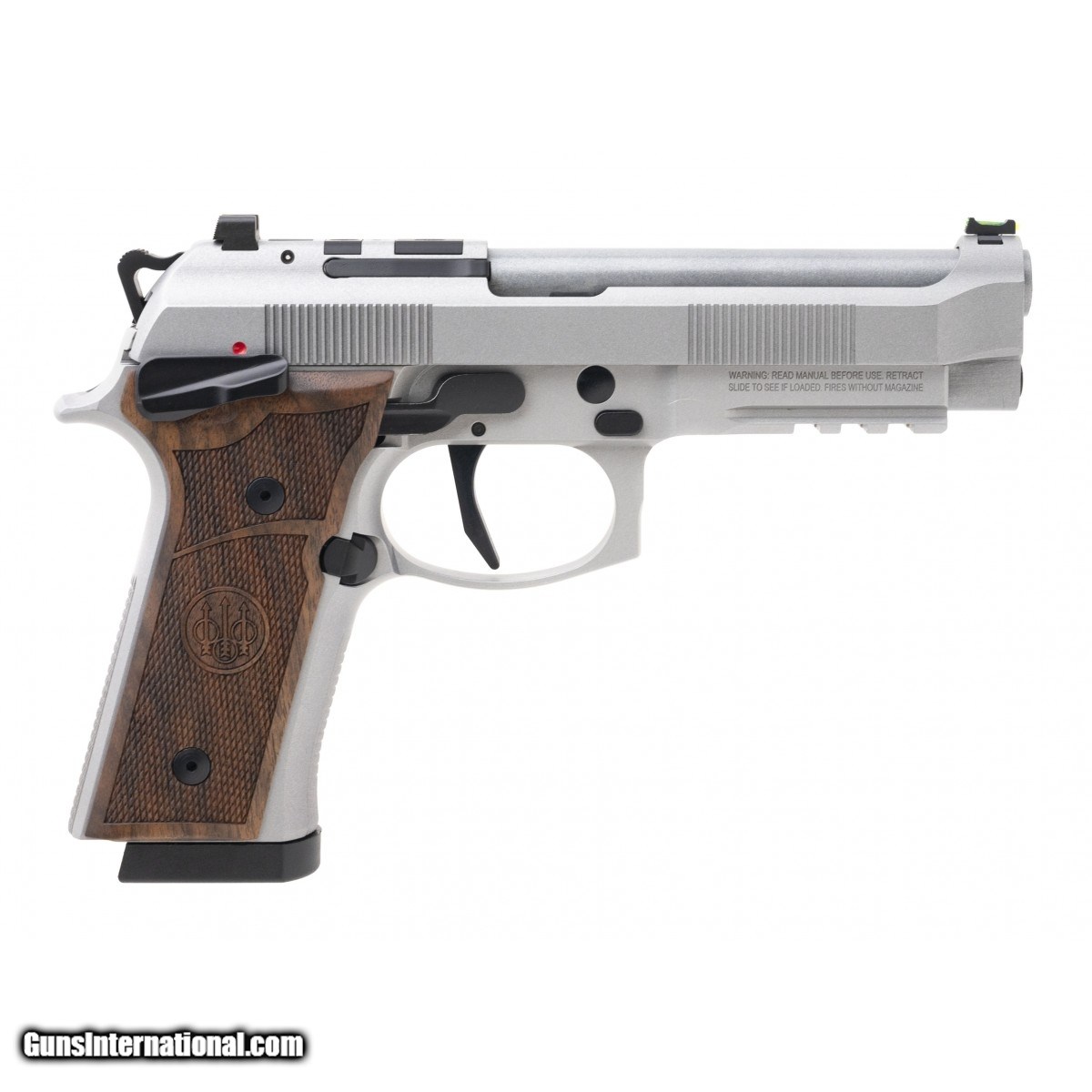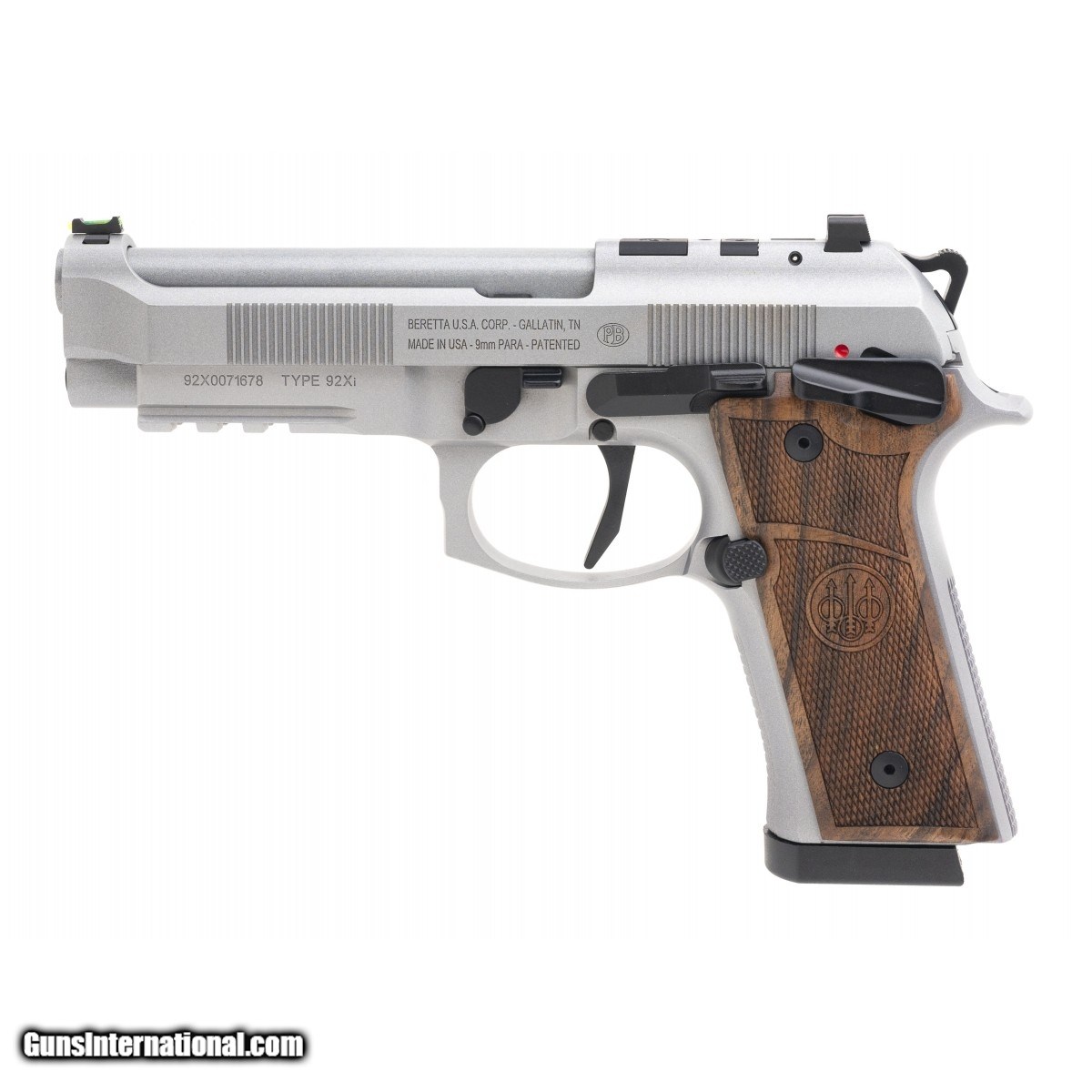 Description: " SN:92X0071678. Modern production. 9mm with a 4.4"" barrel. Bore is excellent. Full size aluminum alloy handgun. Metal is excellent. Wooed grips are excellent. ambidextrous safety Flat face trigger and optic ready slide. Overall condition is excellent. SOLD |
