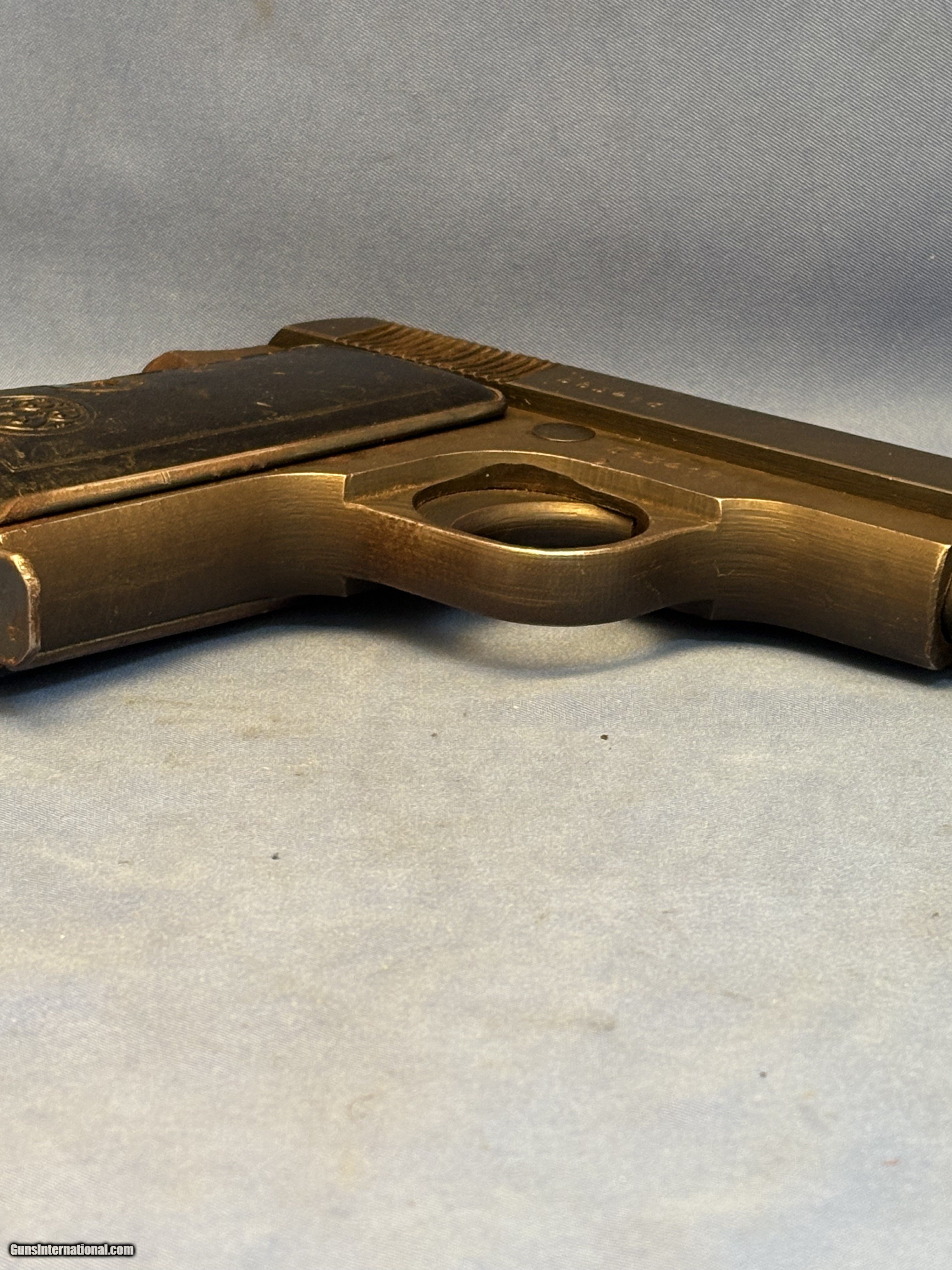 Bore Condition: Good – Bright, Shiny, Clean, well-maintained, minor wear marks. Bore Rifling: Good Rifling – Intact, well-defined lands and grooves. Specific Condition Notes: The pistol is fully functional. Multiple areas of pitting, surface blemishes, scratches, and minor finish loss are present. The bore remains clean and shiny. Comes with two magazines and a holster that appears to be original WHAT YOU ARE BUYING IS TO HAVE THIS ITEM DELIVERED TO YOUR RECEIVING FFL. ONCE IT ARRIVES WE HAVE DONE OUR JOB. NO REFUNDS WILL BE GIVEN FOR ANY REASON SUCH AS YOU CANT OWN IT, CANT PASS A BACKGROUND CHECK, CHANGE OF MIND AND SO ON. UNDERSTAND THAT WE WILL PUT AN ADULT SIGNATURE ON THE PACKAGE SO IT WON'T GET LEFT ON A PORCH OR RECEIVED BY A KID AND IF THAT IS UNACCEPTABLE THEN I’M SORRY BUT PLEASE DON’T BID BUYER PAYS A FIXED AMOUNT OF 40.00 3 DAY INSURED SHIPPING TO THE LOWER 48 MAINLAND STATES. SHIPPING TO ALASKA, HAWAII OR PUERTO RICO WOULD BE 80.00 NO SHIPMENTS OUTSIDE THE USA. MISSOURI RESIDENTS DO PAY A 8.075% SALES TAX. NO EXTRA CHARGE FOR CREDIT CARDS BRANDON'S GUN TRADING CO LLC 321 EAST 20TH ST JOPLIN MO. 64804 (417)-623-8787 FAX (417)-623-2326 9-5 TUESDAY-SATURDAY CENTRAL TIME WE ARE ALSO CLOSED THE 1'ST SATURDAY OF EVERY MONTH AND HOLIDAYS. WE DO OFFER A STORE LAY-A-WAY AND THE POLICY GOES LIKE THIS; YOU MUST LET US KNOW THAT YOU INTEND TO USE THE LAY-A-WAY OPTION BEFORE YOU BID. YOU MUST ALSO MAKE A NOTATION WITH ANY MAIL TO US THAT YOU ARE USING THE LAY-A-WAY OPTION. 1/3RD DOWN WITH IN 10 DAYS OF THE CLOSE. ITEM MUST BE PAID OFF WITH IN 3 MONTHS OF THE CLOSE. A CREDIT CARD "CAN NOT" BE USED AS A DOWN PAYMENT FOR A LAY-A-WAY. IF YOU DO NOT PAY OFF THE LAY-A-WAY WITH IN 3 MONTHS, THE ITEM WILL BE RE-LISTED AND YOU WILL FORFEIT ANY MONEY PUT DOWN. NO EXCEPTIONS! DO NOT BUY IF YOU CAN'T PAY FOR IT OR PUT DOWN THE PRE-AGREED LAYAWAY DOWN PAYMENT WITH IN 2 WEEKS OF THE CLOSE. OUR INVENTORY NUMBER A1116 Handgun Caliber: .32 ACP (7.65x17mm Browning SR) Price: $849.99 Shipping: $40.00 Contact Seller |