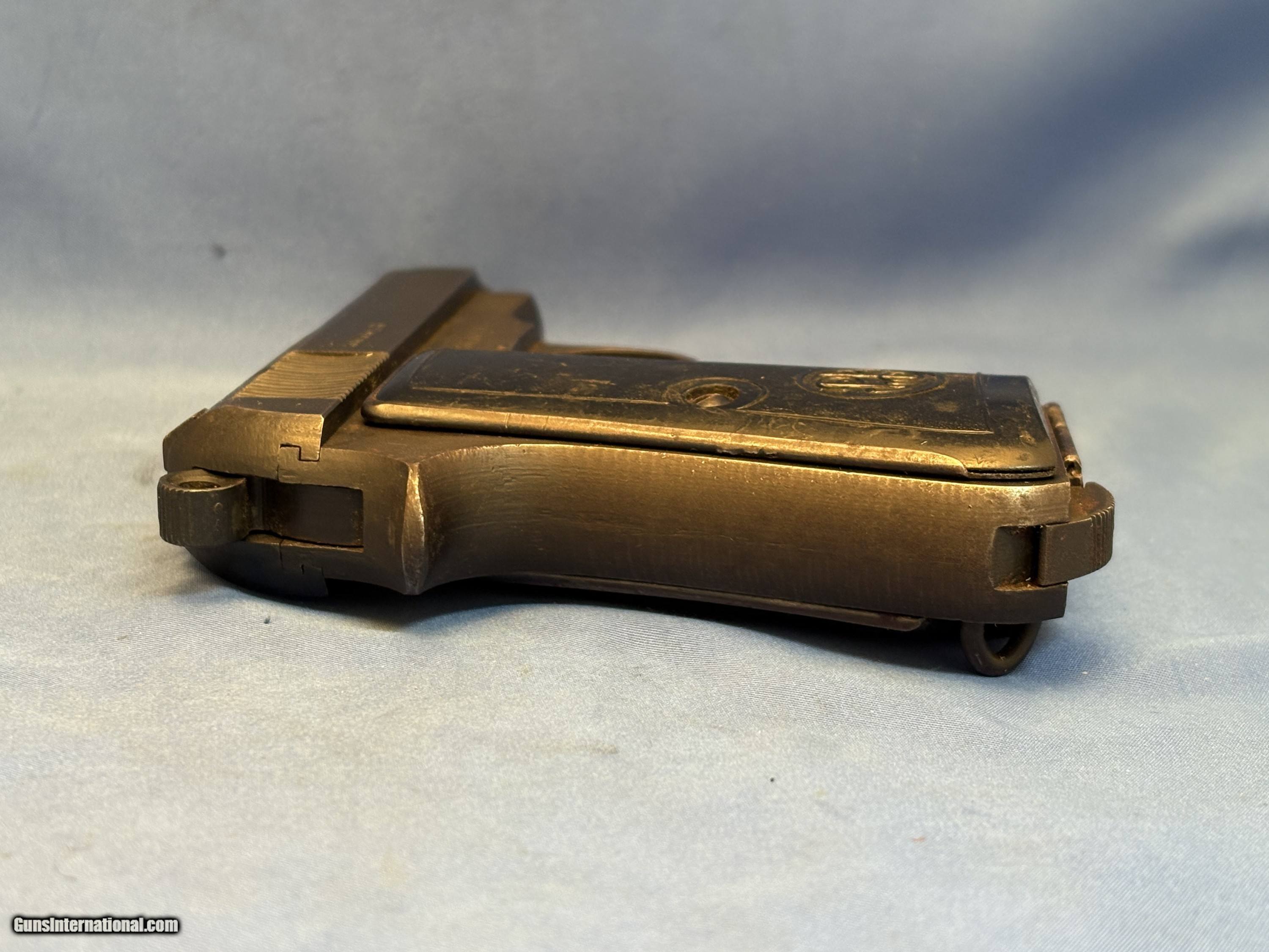 Description: THIS IS A 1944 BERETTA MODEL 1935 CHAMBERED IN 32 ACP Produced in 1944 during the German occupation of Italy, this Beretta Model 1935 carries the wartime “4 UT” acceptance stamp and matching slide-to-frame serial numbers. Its compact size, open-top slide, and rugged carbon-steel construction made it one of the smallest service pistols issued in World War II, while also influencing post-war Beretta designs. Collectors looking for a documented German-contract variant will find this example notable for its intact markings and functional condition.