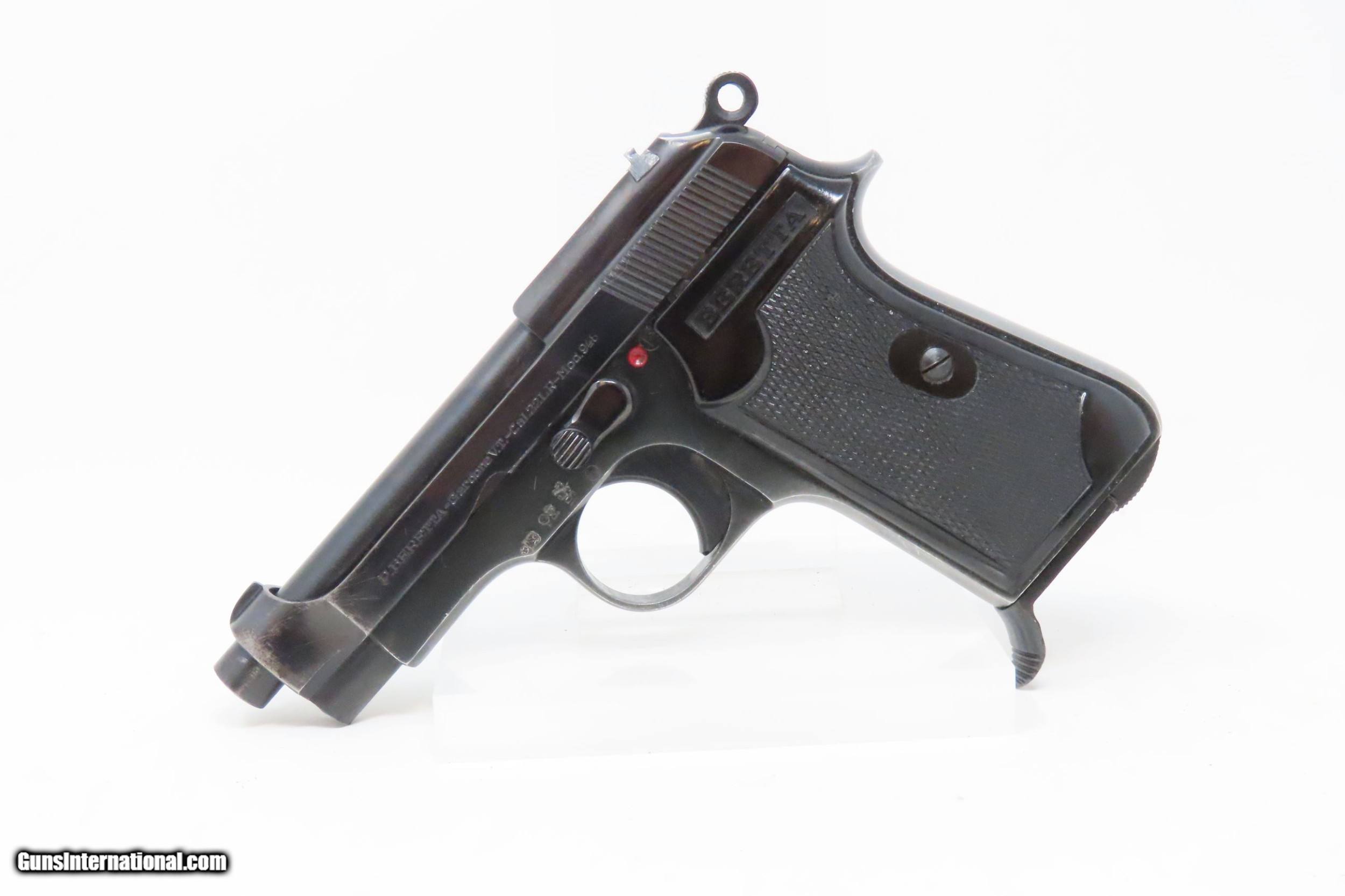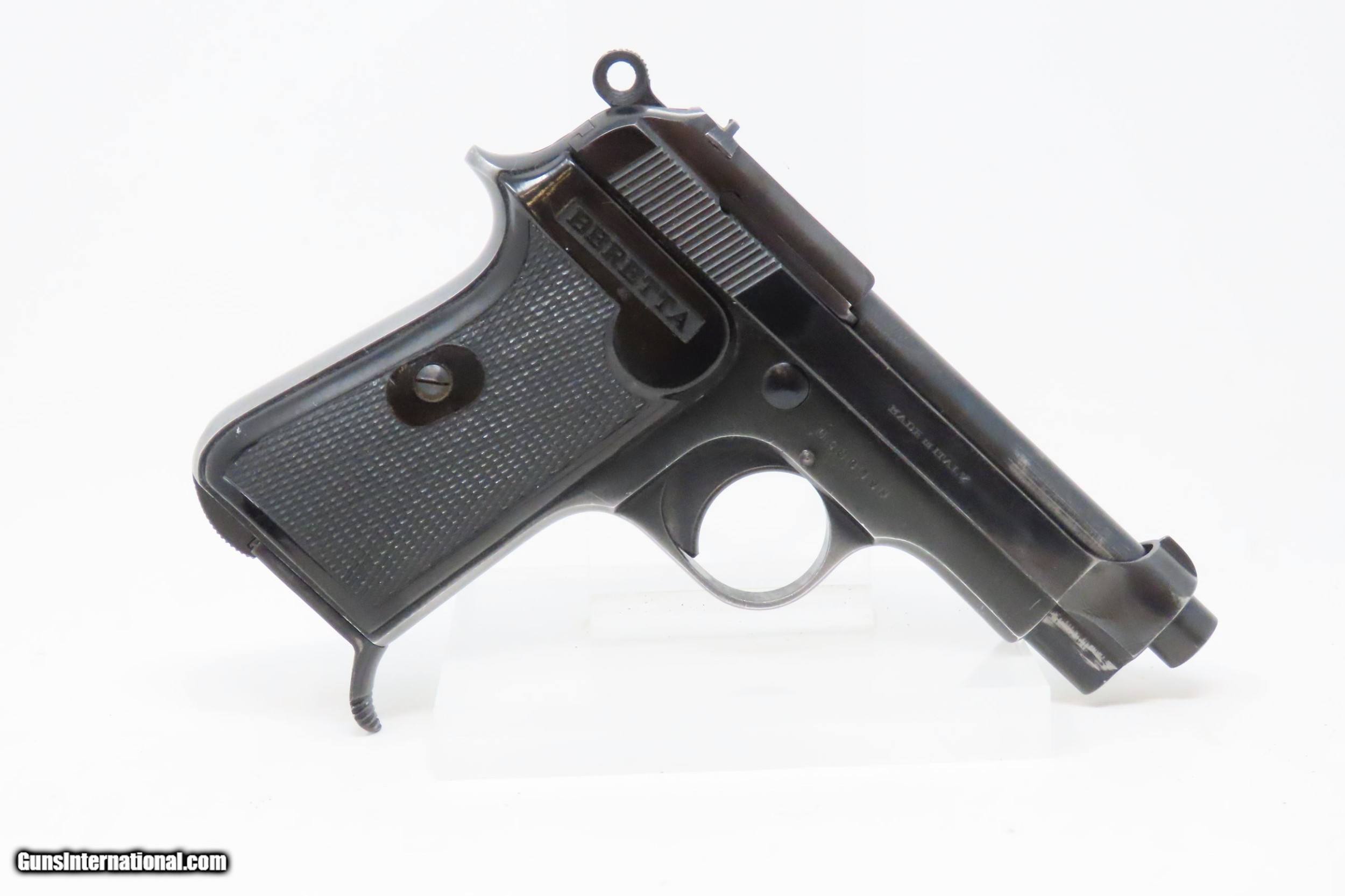 Description: 1954 Date Italian BERETTA Model 948 .22 Cal LR SEMI-AUTO Pistol Rimfire C&R .22 Long Rifle Version of the MODEL 1934 Here we present a C&R Italian Beretta Model 948 Pistol, manufactured in 1954 in Gardone Val Trompia, Italy with a production run between 1949 and 1958. The Beretta Model 948 is a .22 Long Rifle version of the Model 1934 which was Italy’s military service pistol during WWII. The 1934 was available in .32 ACP or .380 ACP and manufacture of the 1934 began in, naturally, 1934. The Model 948 was produced in the mid-1950’s and was offered with a 3.5 inch barrel or a less common 6 inch barrel. The Model 1934 and the Model 948 look identical except that the Model 948 grips are different from the earlier Beretta models. Instead of the usual 'PB' monogram at the bottom portion of the grip, the word 'Beretta' is embossed across the top. The 948 also featured an aluminum frame. The Model 948 was replaced by the Model 70, which was also available in 7.65mm and 9mm. The overall condition is near fine. Original finish. Robust action. Bright and reflective bore with nice rifling. Both grips are in very good shape. Sharp markings. This firearm is classified as a Curio & Relic. Barrel is 3-3/8 inches. Caliber: .22 Long Rifle Rimfire Overall condition as seen in photos. Very Fast. Very Safe. FREE SHIPPING. Will need to be sent to your local FFL or C&R licensee. This firearm is classified as a Curio & Relic. Guaranteed AUTHENTIC & Includes CERTIFICATE OF AUTHENTICITY. ancestryguns $1000 #217559 SOLD Curio/Relic: Yes |