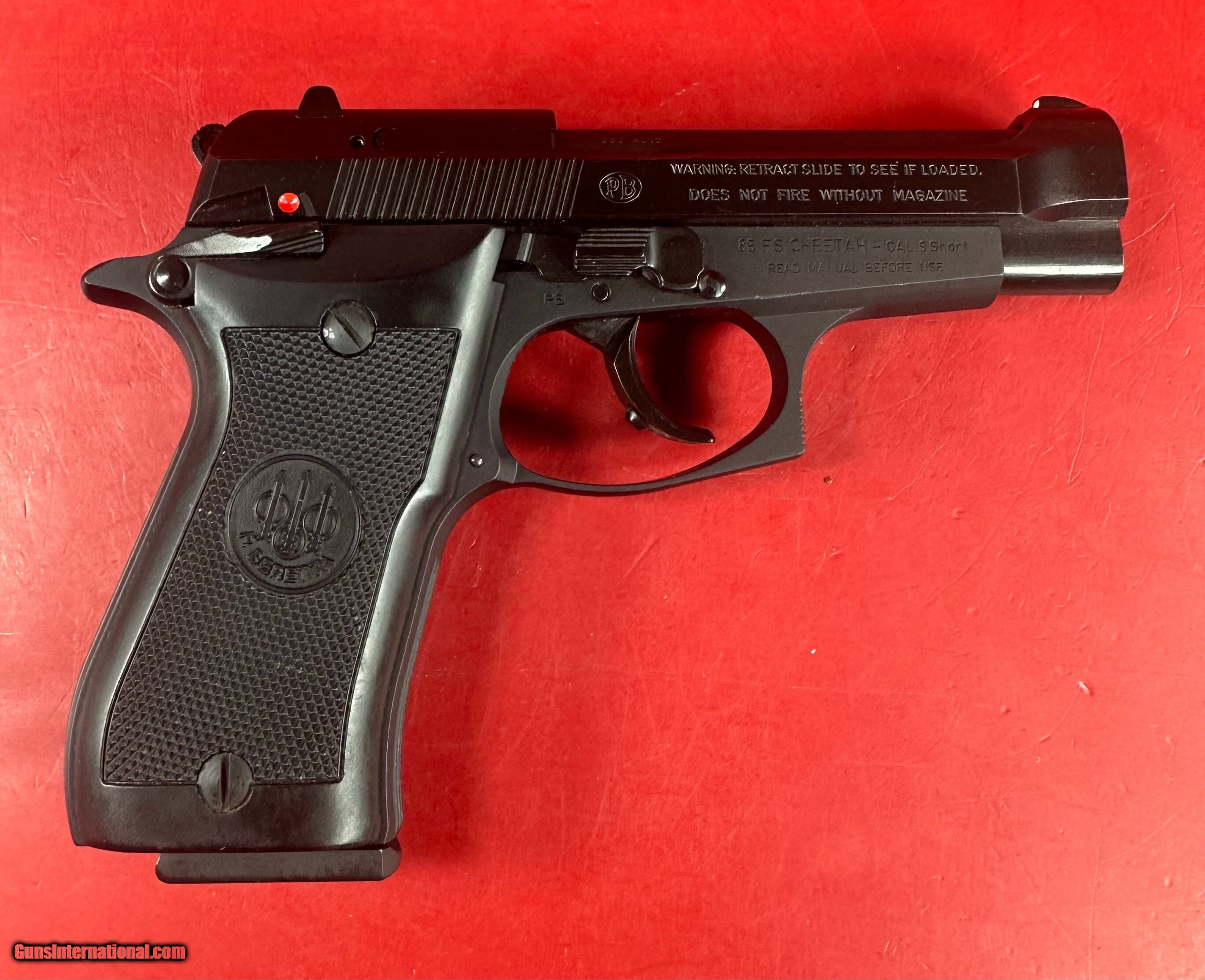 Description: The Beretta Cheetah, also known by its original model name of "Series 81", is a line of compact blowback operated semi-automatic pistols designed and manufactured by Beretta of Italy. They were introduced in 1976 and include models in .32 ACP (Models 81 and 82), .380 ACP (9 mm Short) (Models 83, 84, 85 and 86) and .22 LR (Models 87, 87 Target and 89). This is an example of Beretta 85 FS (84FS) (safety and decocker) in excellent condition. This firearm features the classic and iconic Beretta Model 84 type design, ring hammer, light weight aluminum frame, thumb safety, double & single action trigger, low profile front and rear sights w white dots sight accents, fixed barrel 3.75", and plastic Beretta grips with Beretta logo. The gun is near mint: Metal is 98%+, bore 99%+, grips 99%+. Also included in this sale are: two (2) Beretta OEM 8 rd magazines, original factory plastic box, Beretta cleaning tools, factory paperwork. Please look at the pictures for details. This gun will be a great addition to any collection or for concealed carry. Layaway and no interest payment plan are available. Handgun Caliber: .380 ACP (9x17mm Browning Short) Price: $899.00 Shipping: $39.00 Contact Seller |