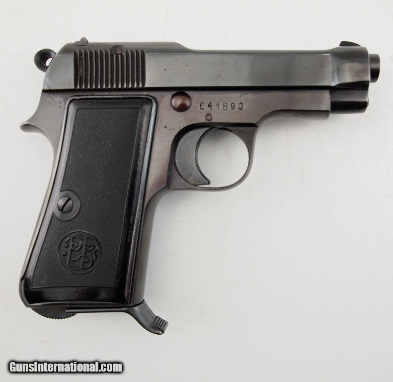 Description: Beretta 1934 .32 ACP, 3 1/4" bbl, bright shiny bore, good rifling, blued finish, V notch rear sight, blade front sight, smooth trigger, serrated hammer, lanyard loop, one 7 round magazine, and black textured grips. Add 3% for Credit Card Shipping $25.00 SOLD |