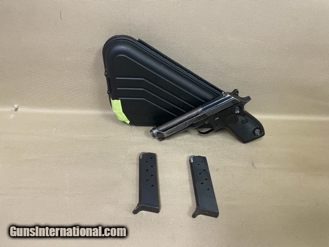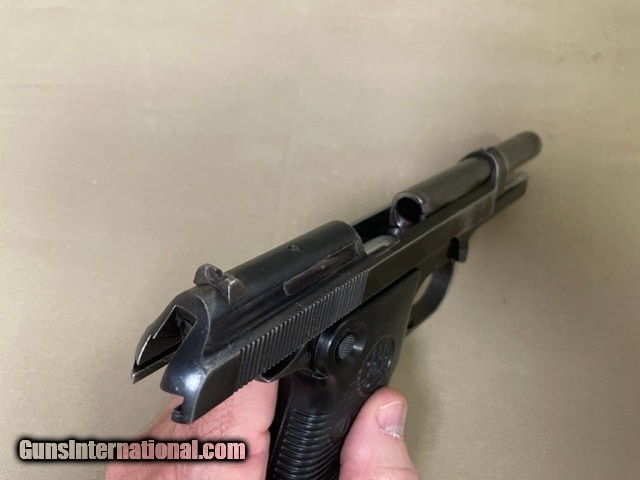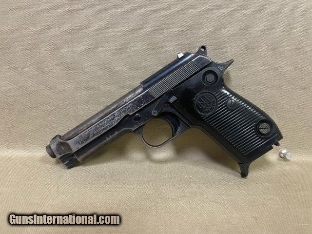 Description: Guns Listing ID: 657676 BERETTA PISTOL - USED MODEL - 1951 CAL - 9MM FAIR CONDITION, GOOD WORKING ORDER 2 MAGS HARD CASE 4.5\" BBL MATCHING NUMBERS ON SLIDE + FRAME ONE SIDE OF BEAVER TAIL STAMPED \"PS\" IN OVAL ABOVE TRIGGER GUARD IS STAMPED \"SIMONTAGGIO\" PW ARMS IMPORT SEMI AUTO 8 + 1 SOLD Manufacturer: BERETTA Model: 1951 Caliber Info: 9MM Condition: Used - Non-Certified Barrels: 4.5 BARREL |