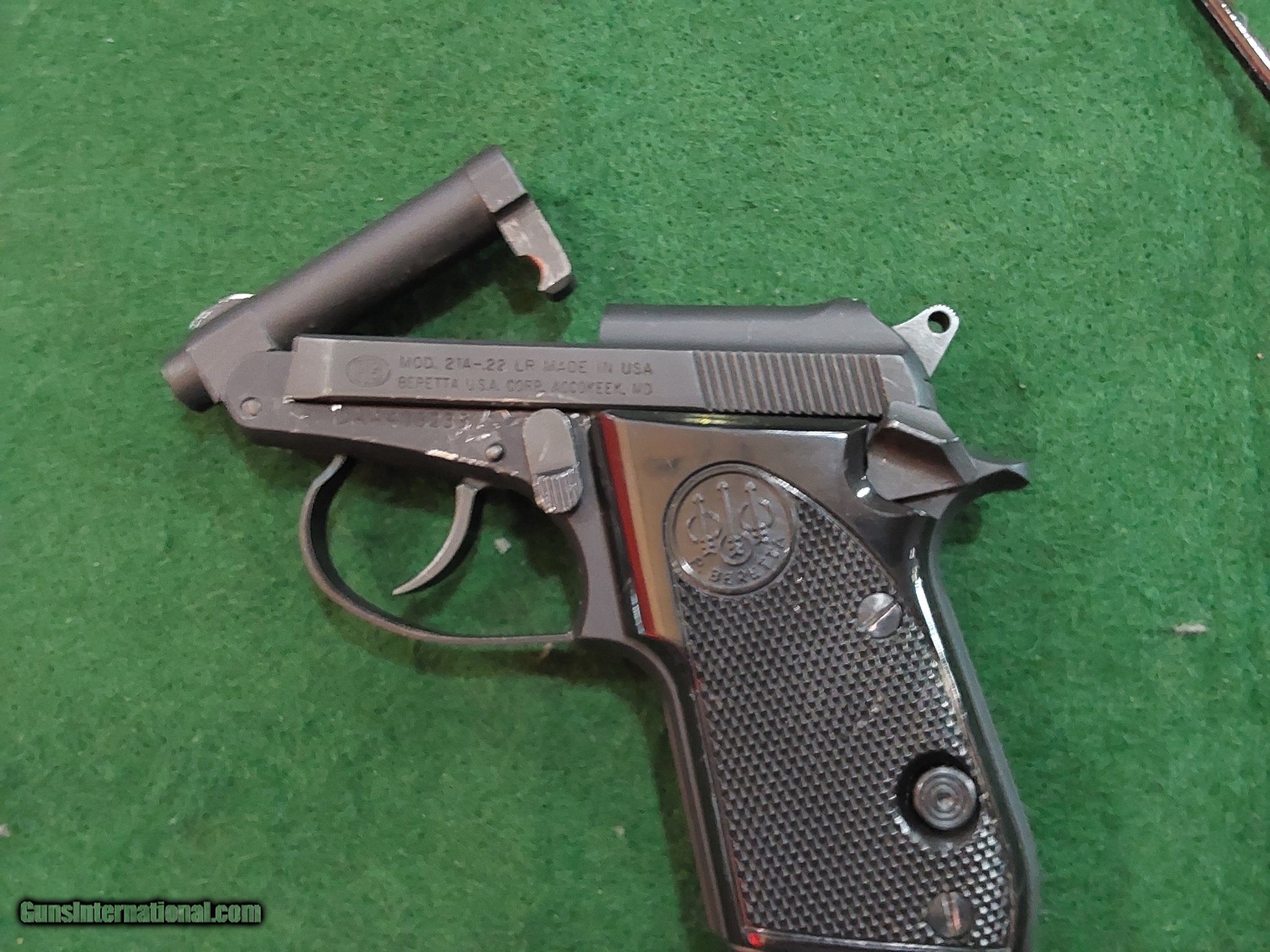 Description: Guns Listing ID: 1316683 Nice little pocket 22 SOLD Manufacturer: BERETTA Model: 21 A Caliber Info: .22 CAL Condition: Used - Non-Certified Barrels: 2.5 BARREL Finish: BLUE |
