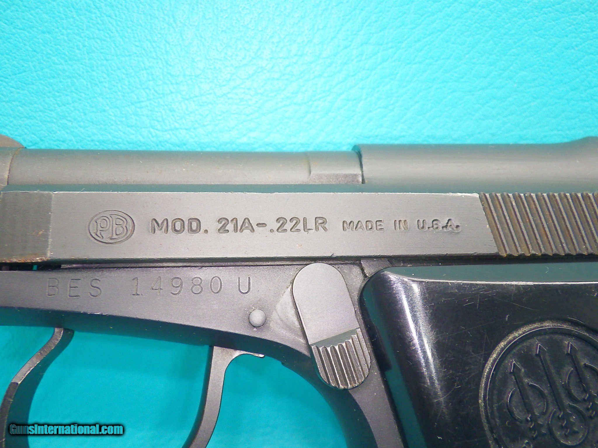 Description: ***SOLD***Make: Beretta Model: 21A Finish: Black Caliber: .22 long rifle Action: Semi automatic Barrel length: 2 1/2 inch Bore: Shiny with sharp rifling Grips: Checkered black synthetic with logo Sights: fixed MFG Date: NA Features: Unique tip up barrel design, single/double action firing, frame mounted safety, and one 7 round magazine Extras: Factory box (not matching), owners manual Condition: Nice shape with only sign of light use/wear. Shipping Cost: $25.00 The pistol functions as it should with a smooth action and strong ejection. The factory box has some discoloration which the photos show. Please refer to the photos for the overall condition. FFL is required, No handgun sales in MA.***SOLD*** SOLD Handgun Caliber: .22 Long Rifle Manufacturer: Beretta Model: 21A Serial Number: BES14980U |