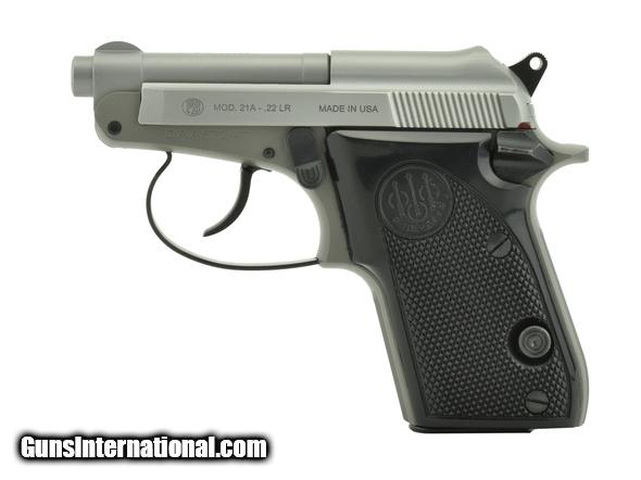 Description: Beretta 21A .22LR Caliber Pistol. Inox Tip-up model in excellent condition with box.
