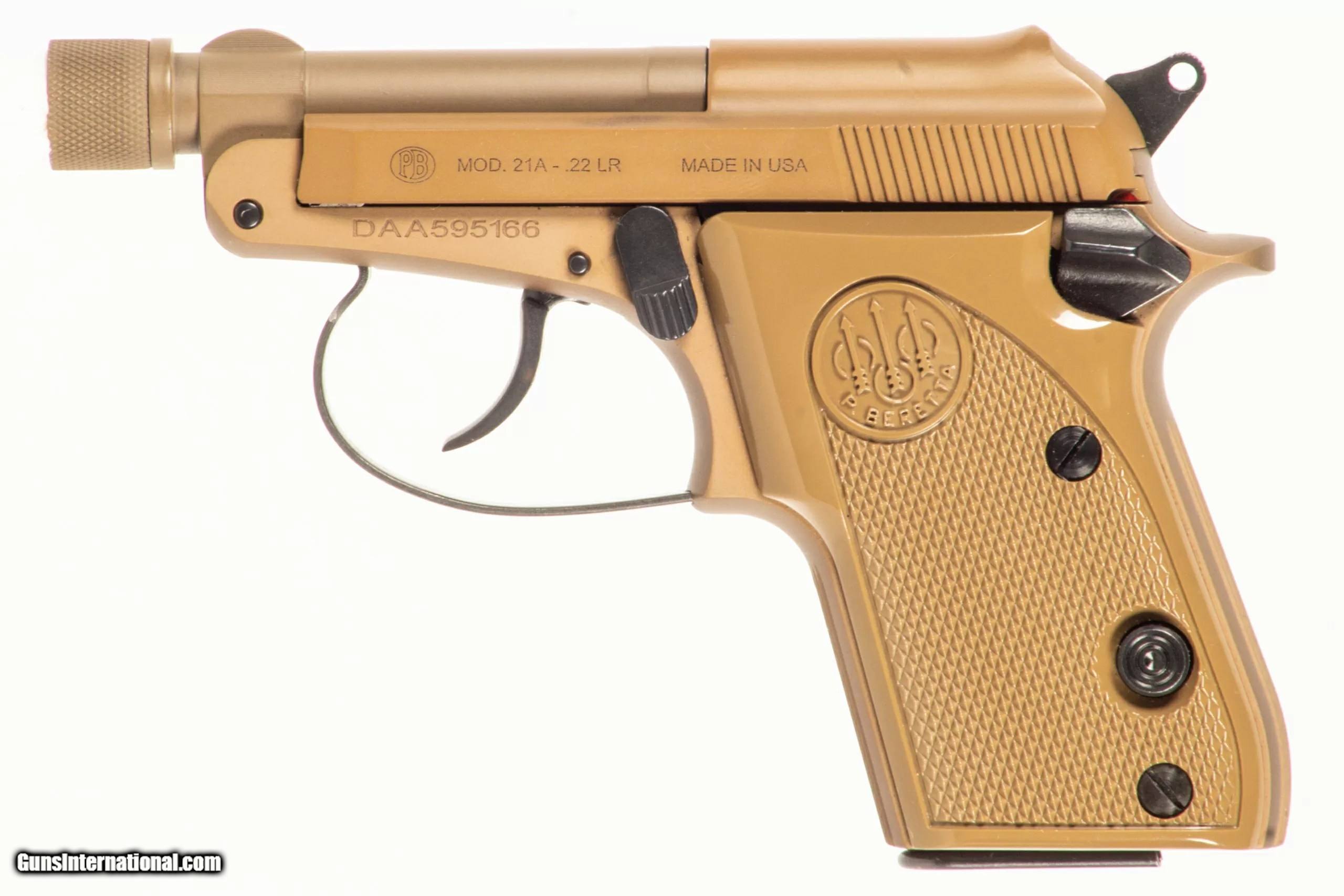 Description: Beretta model 21A, chambered in 22 long rifle. This pistol sports a 2 15/16 inch barrel and features a bright bore and sharp rifling. This gun comes with a box. The NRA grading condition for this USED firearm is Very Good. Dury's Lifetime Warranty: All firearms purchased from Dury’s Gun Shop, NEW or USED, are covered by a lifetime warranty. We will repair or replace, at our discretion, any firearm purchased from Dury’s Gun Shop, Inc. for as long as it is owned by the purchaser. This warranty is not transferable. WE BUY GUNS! NO COLLECTION TOO BIG OR SMALL FOR OUR INTERNATIONAL CUSTOMERS ALL OF OUR FIREARMS CAN BE PURCHASED DIRECTLY FROM OUR DURY'S GUNS SITE ! SOLD Manufacturer: Beretta Model: 21A Caliber Info: 22 Long Rifle Barrels: 3inches |