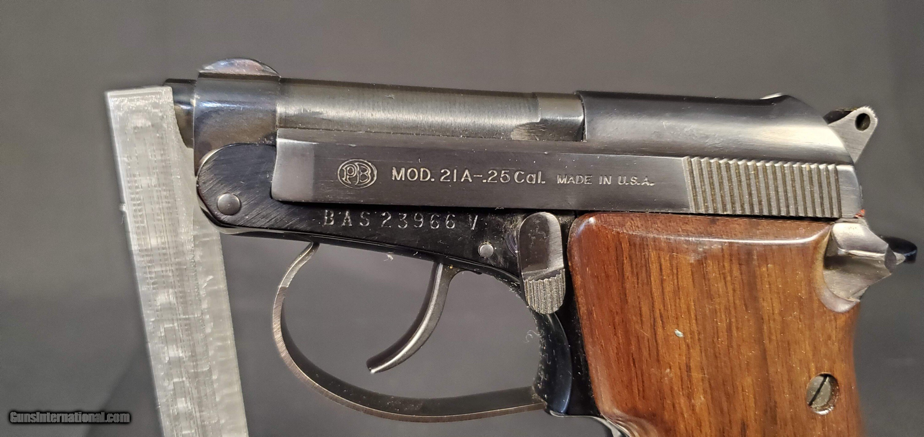 Beretta 21A, 25 acp, 2 1/2" Barrel, Wood Grips, Blued