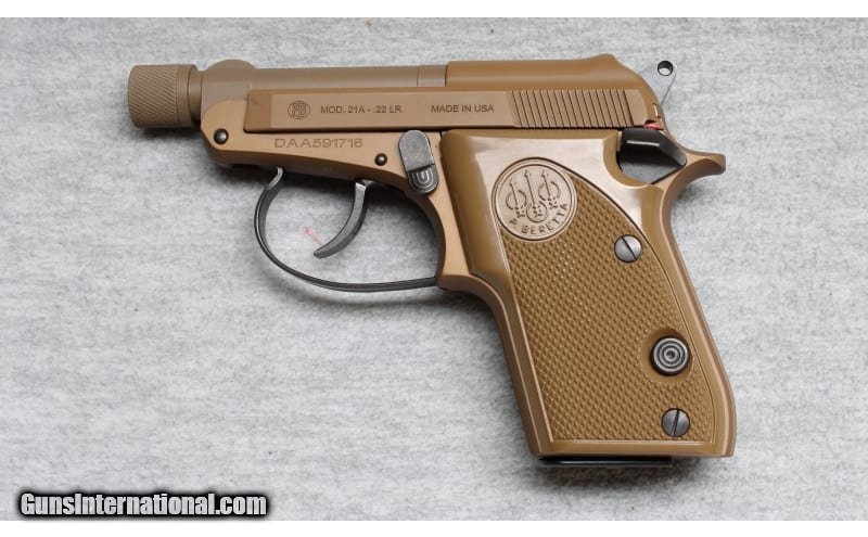 Description: Appears as new with one mag and box. Pocket size .22 rimfire semi auto pistol. 3" threaded barrel, unique dark earth color finish, single action trigger with manual safety. .22 Long Rifle SOLD Chambers: Semi auto Metal Condition: As new Bore Condition: Bright Barrels: 3 Triggers: Single action Butt Pad: Factory grips Sights: Fixed sights Item Location: La Vista, NE |