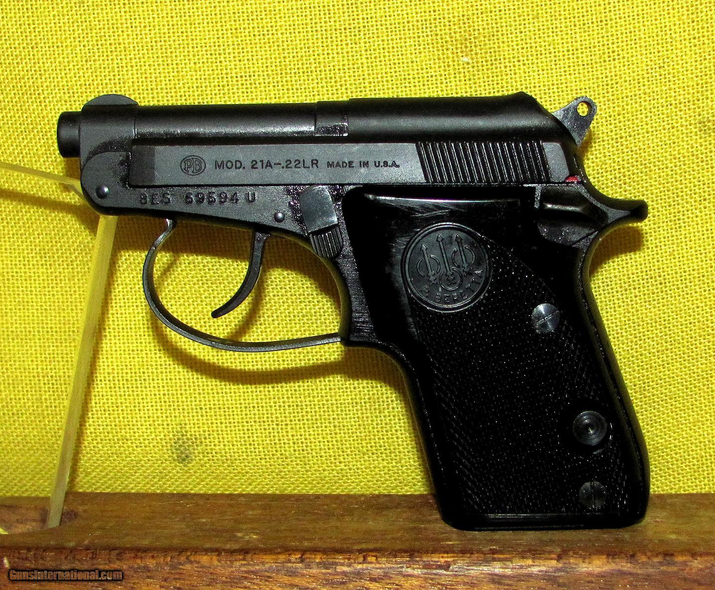 Description: BERETTA model 21A in .22 L.R. CAL., with 2 1/2" barrel. Color MATTE. BERETTA MODEL 21-A TIP UP, BRIGHT SHINY BORE WITH EXCELLENT GRIPS 98%+ FACTORY FINISH, COMES WITH ONE FACTORY MAGAZINE. OUR NEW STOCK # D31835 Condition 98%+. Serial number BES69594U. SOLD |